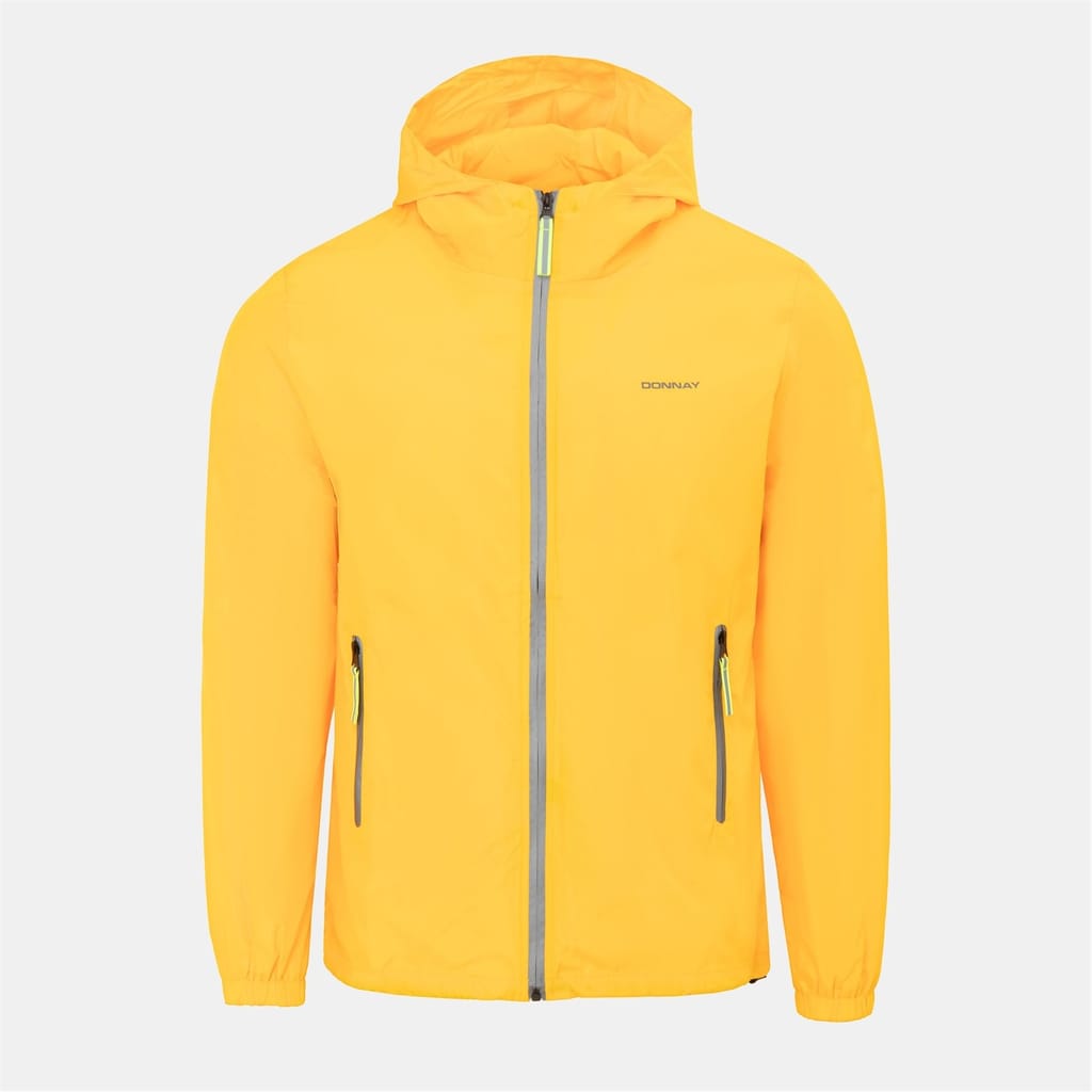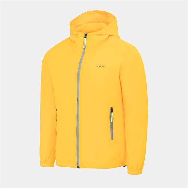 The Donnay windbreaker jacket features a hooded design and a solid pattern, offering a sleek look. It includes a zipper closure for convenience and an elasticated hem and cuffs for a secure fit. The regular fit ensures comfort, while the logo embellishment adds a touch of brand identity. -