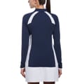 This Original Penguin top features a stylish color block pattern and a practical quarter zipper closure. Designed with a zip neck and a polo collar, it offers a modern twist on a classic look. The long raglan sleeves and regular fit ensure comfort and ease of movement. A subtle logo embellishment adds a touch of brand identity to this versatile piece. -