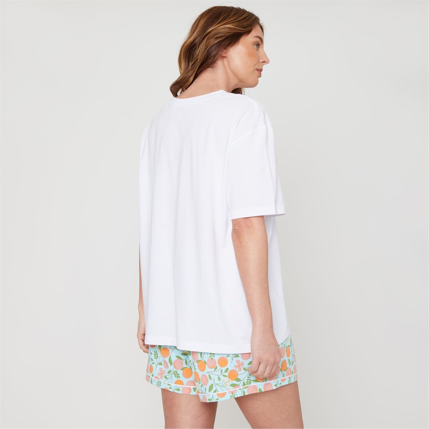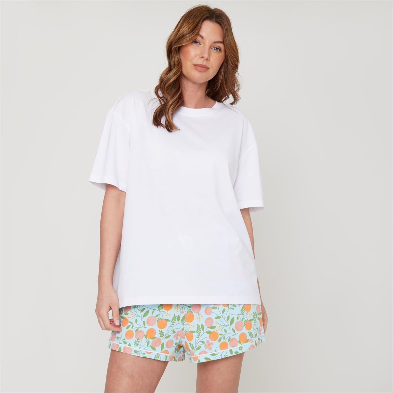 Relax in style with Miso's sleepwear set, featuring a playful fruit pattern. This loungewear collection offers a relaxed fit, ensuring comfort throughout the night. The two-piece pyjama includes a top and pajama shorts, complete with a convenient drawstring closure and handy pocket embellishments. -