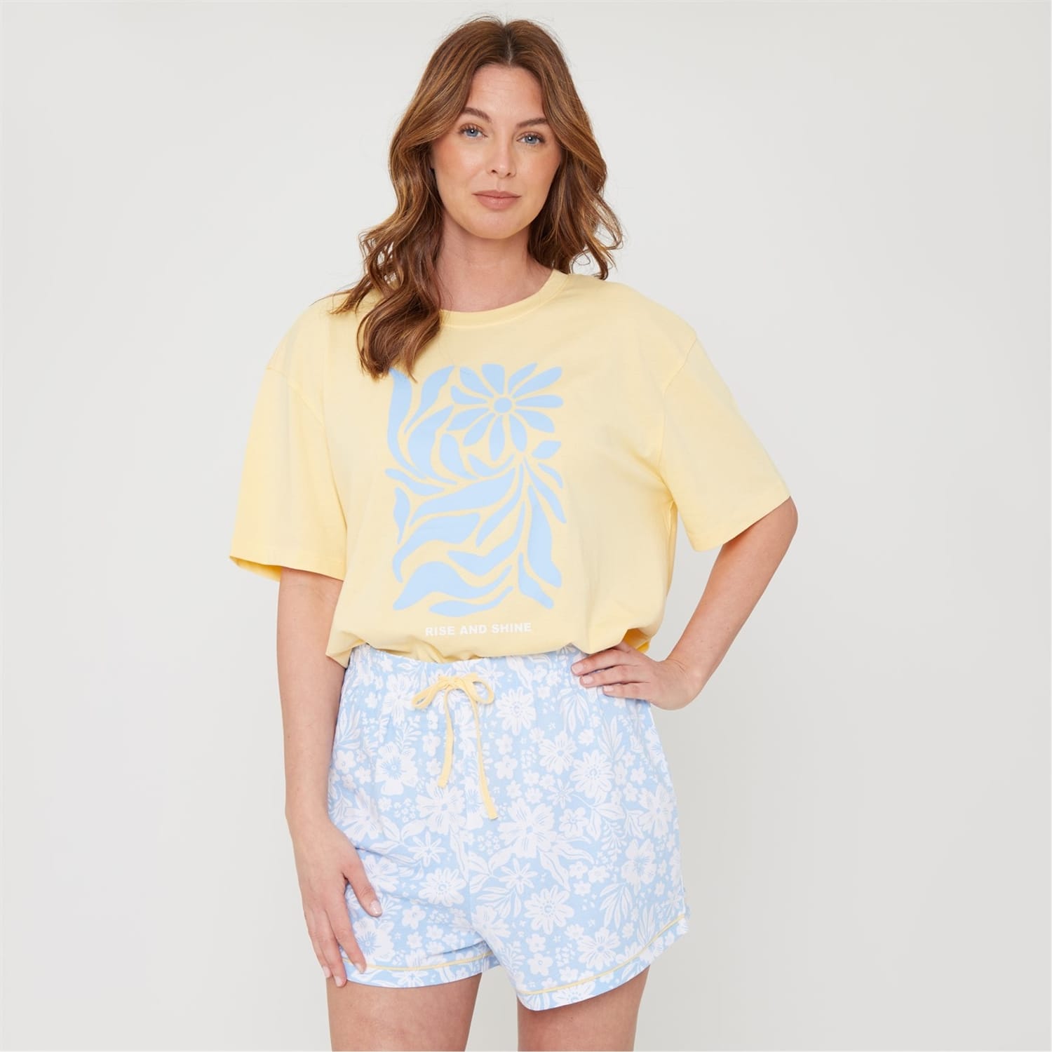 Embrace comfort with Miso's floral sleepwear set, featuring a relaxed fit. This two-piece pyjama from the loungewear collection includes a top adorned with a subtle logo and matching shorts. Perfect for a cosy night's sleep, this set combines style and ease for a restful experience. -