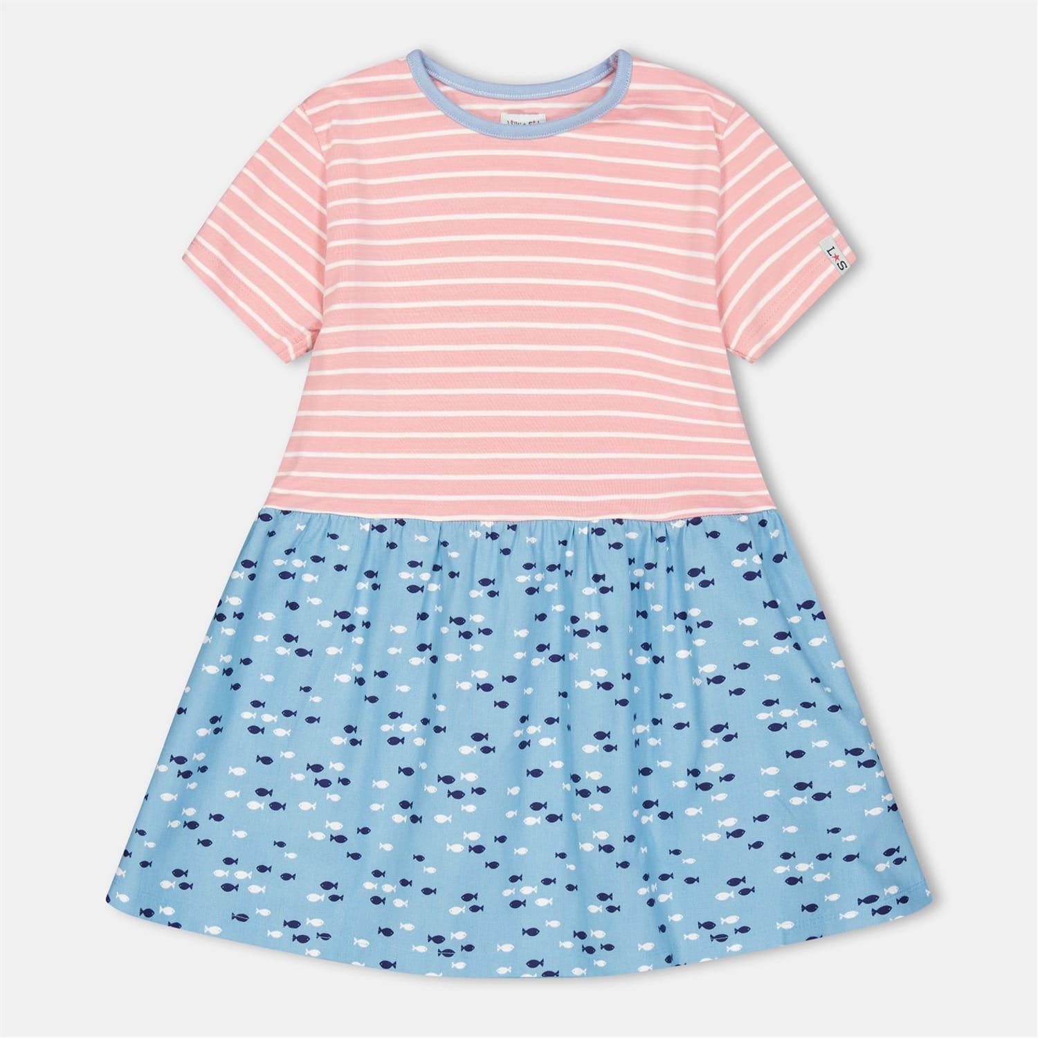 Lilly & Sid's A-line dress features a knee-length design with a crew neck and a straight hem. The dress showcases a stylish stripe pattern, offering a regular fit for comfort and ease. -