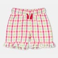 Lilly & Sid plaid shorts feature a woven design with a playful ruffle embellishment. These casual shorts are equipped with a convenient drawstring closure and an elasticated waistband for a comfortable fit. Perfect for adding a touch of style to any wardrobe. -