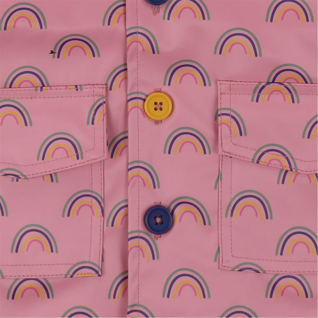 Lilly & Sid rain jacket features a hooded neck and a relaxed fit, perfect for wet weather. This short, water-repellent jacket includes a snap button closure and ribbed cuffs for added comfort. The graphic print adds a touch of style, while practical pockets provide functionality. -