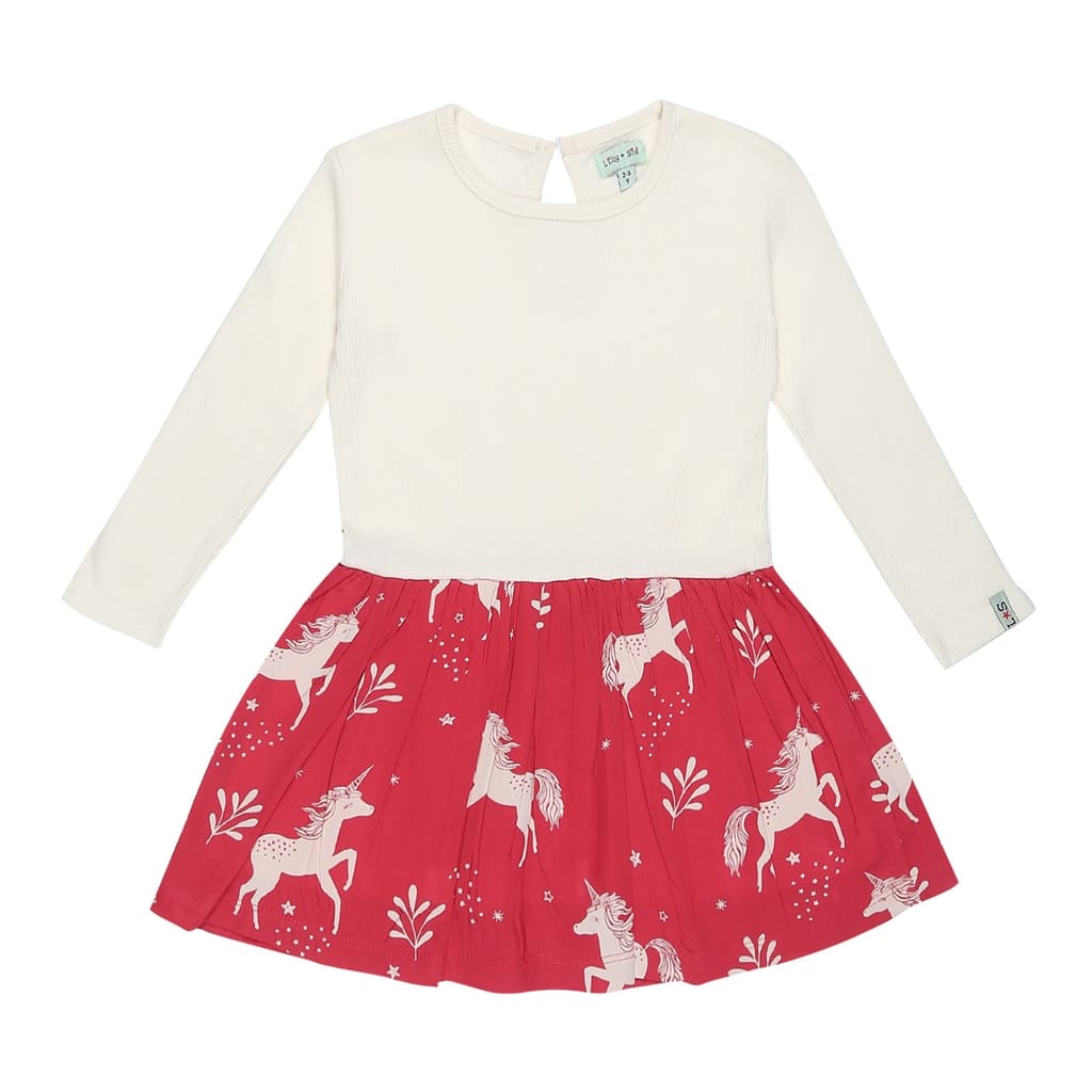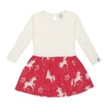 This Lilly & Sid A-line dress features a charming animal pattern, perfect for adding a playful touch to any wardrobe. The dress is designed with a crew neck and long sleeves, offering a comfortable fit. The straight hemline adds a classic finish to this delightful piece. -