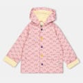 Lilly & Sid rain jacket features a hooded neck and a water-repellent finish, perfect for wet weather. The jacket has a regular fit with a straight hem and elasticated cuffs for added comfort. It includes a button closure and practical pockets. The graphic print adds a stylish touch, making it a functional yet fashionable choice. -