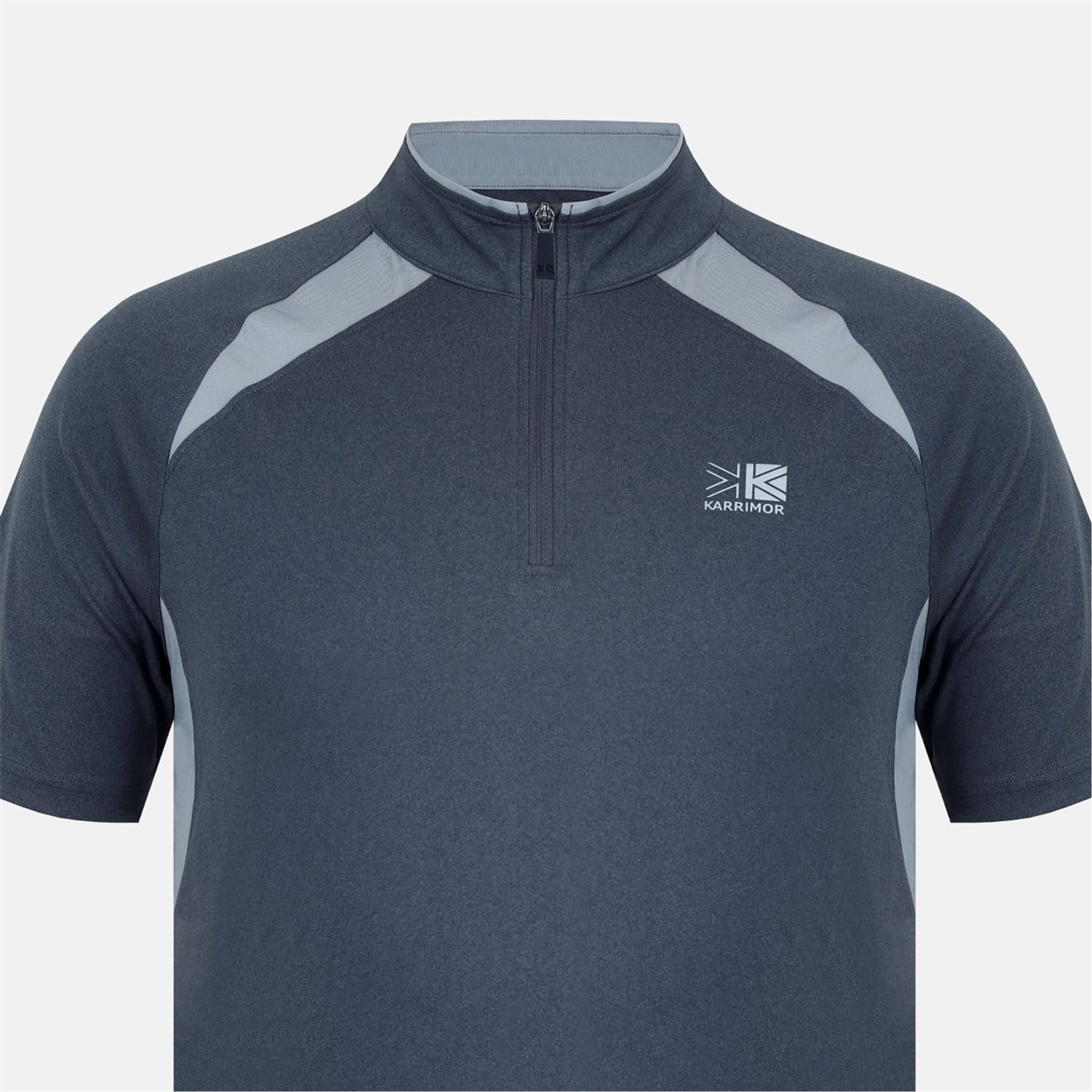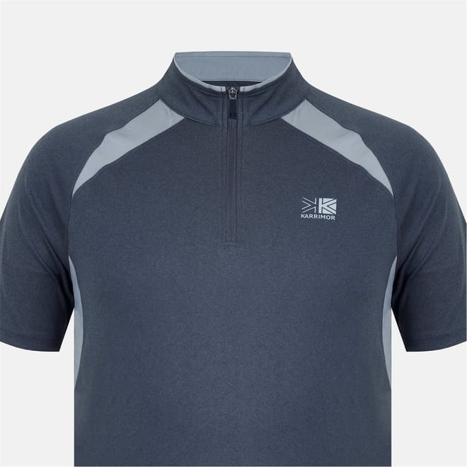 Discover the Karrimor top, designed for performance and casual wear. This short-sleeve piece features a zip neck and a regular fit, offering comfort and style. The solid pattern is complemented by a subtle logo embellishment, making it a versatile addition to your wardrobe. -
