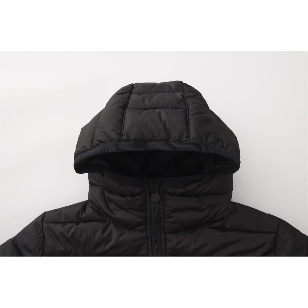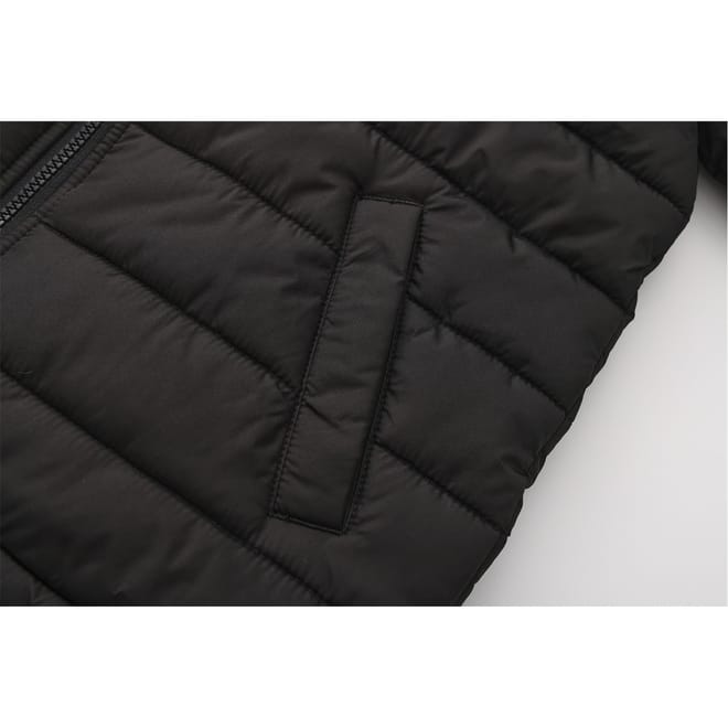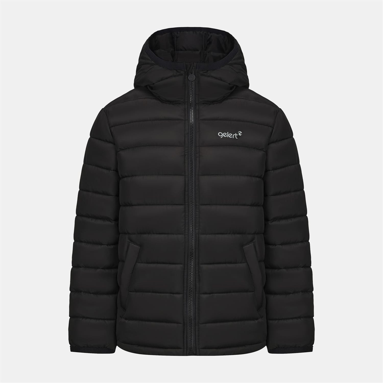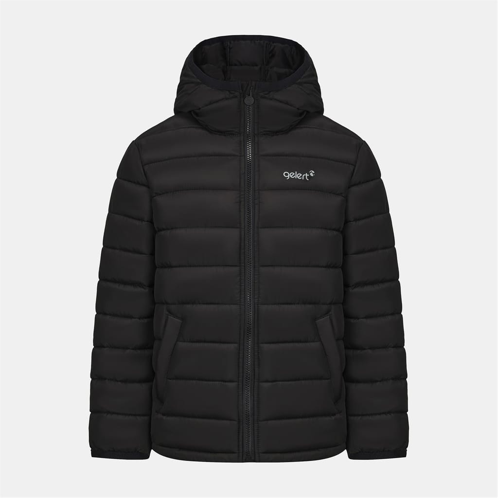 The Gelert junior puffer jacket is designed for warmth and comfort. Featuring a hooded neck and a zipper closure, this insulated jacket ensures protection against the elements. The regular fit and ribbed cuffs provide a snug feel, while the solid pattern and logo embellishment add a touch of style. -