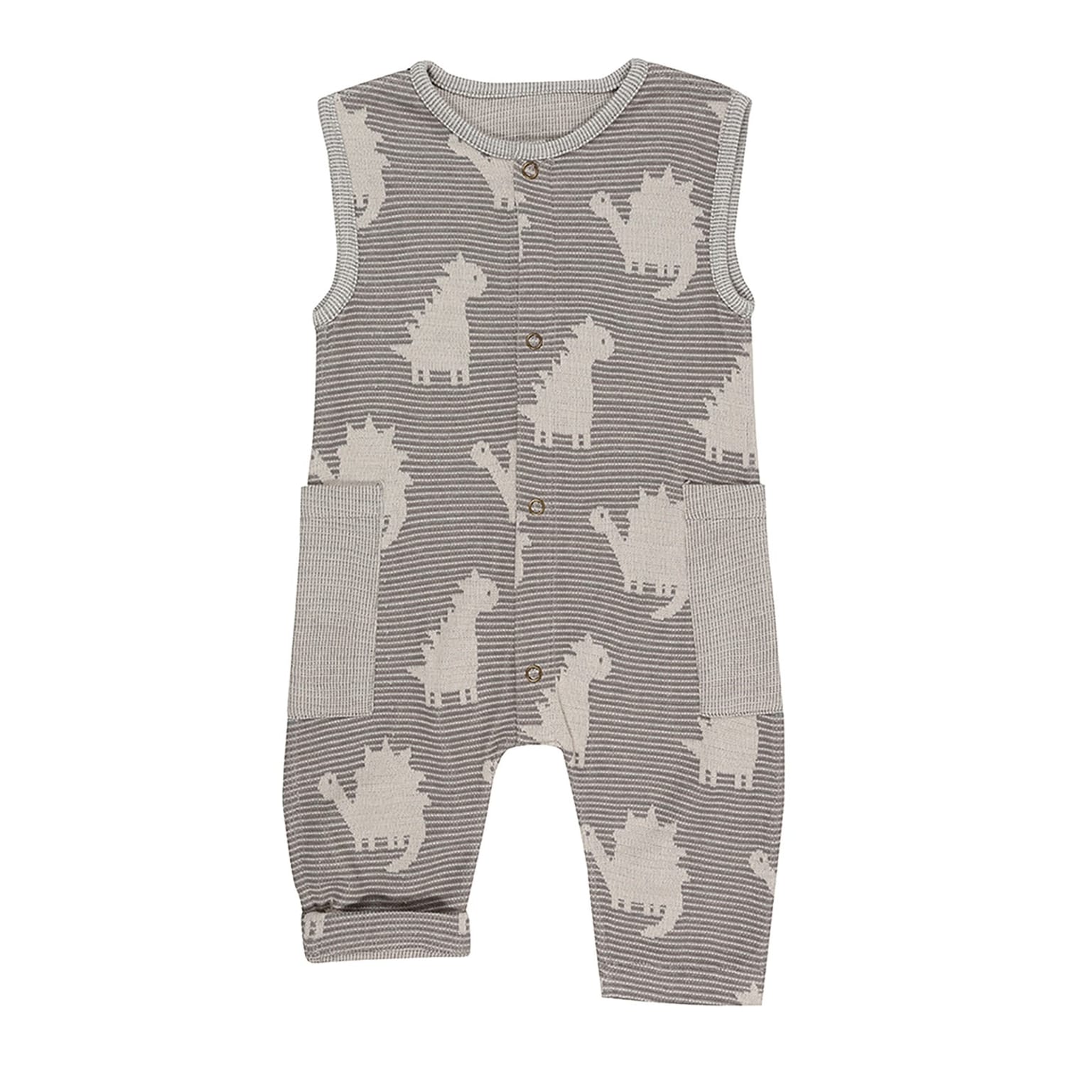 Discover the charm of Lilly & Sid's sleeveless dungaree jumpsuit, featuring a playful animal pattern. This regular fit piece is designed with a crew neck and practical button closure. Embellished with pockets, it combines style and functionality for a versatile addition to your wardrobe. -