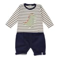 Discover the Lilly & Sid coord set, featuring a striped t-shirt with a crew neck and long plain sleeves. The casual trousers complement the top, creating a cohesive look. The embroidered details add a touch of charm to this set, perfect for any occasion. -