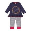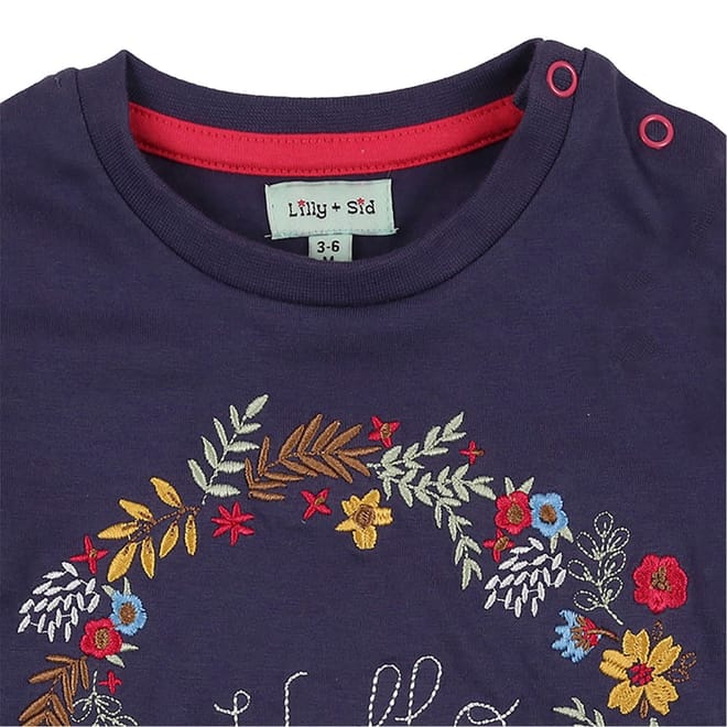 Discover the Lilly & Sid coord set, featuring a crew neck t-shirt with long plain sleeves and horizontal stripes. The set includes leggings, offering a casual yet stylish look. The embroidered details add a touch of charm, making it a perfect choice for any occasion. -