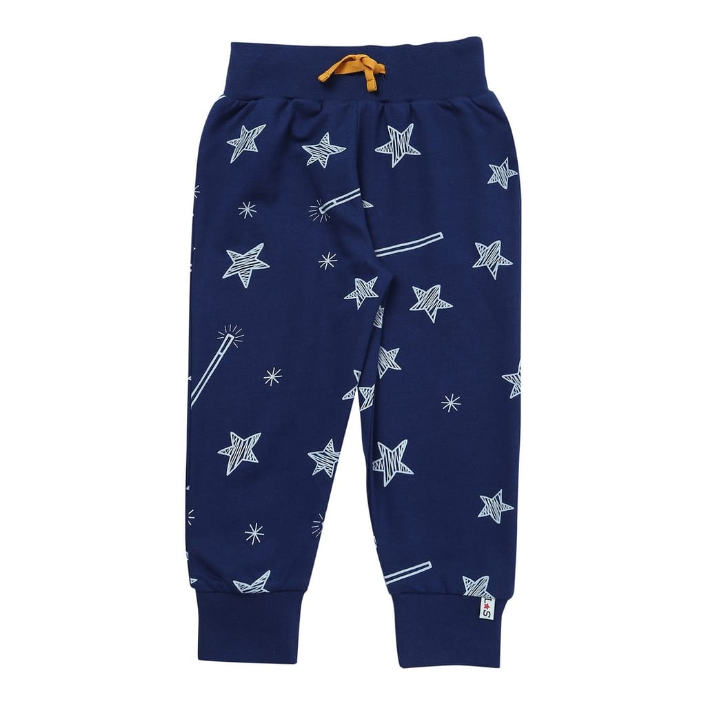 Lilly & Sid joggers feature a playful star pattern, perfect for casual outings. Designed with a drawstring closure and cuffed legs, these joggers offer both comfort and style. Ideal for those who appreciate a blend of functionality and fashion in their casual wardrobe. -
