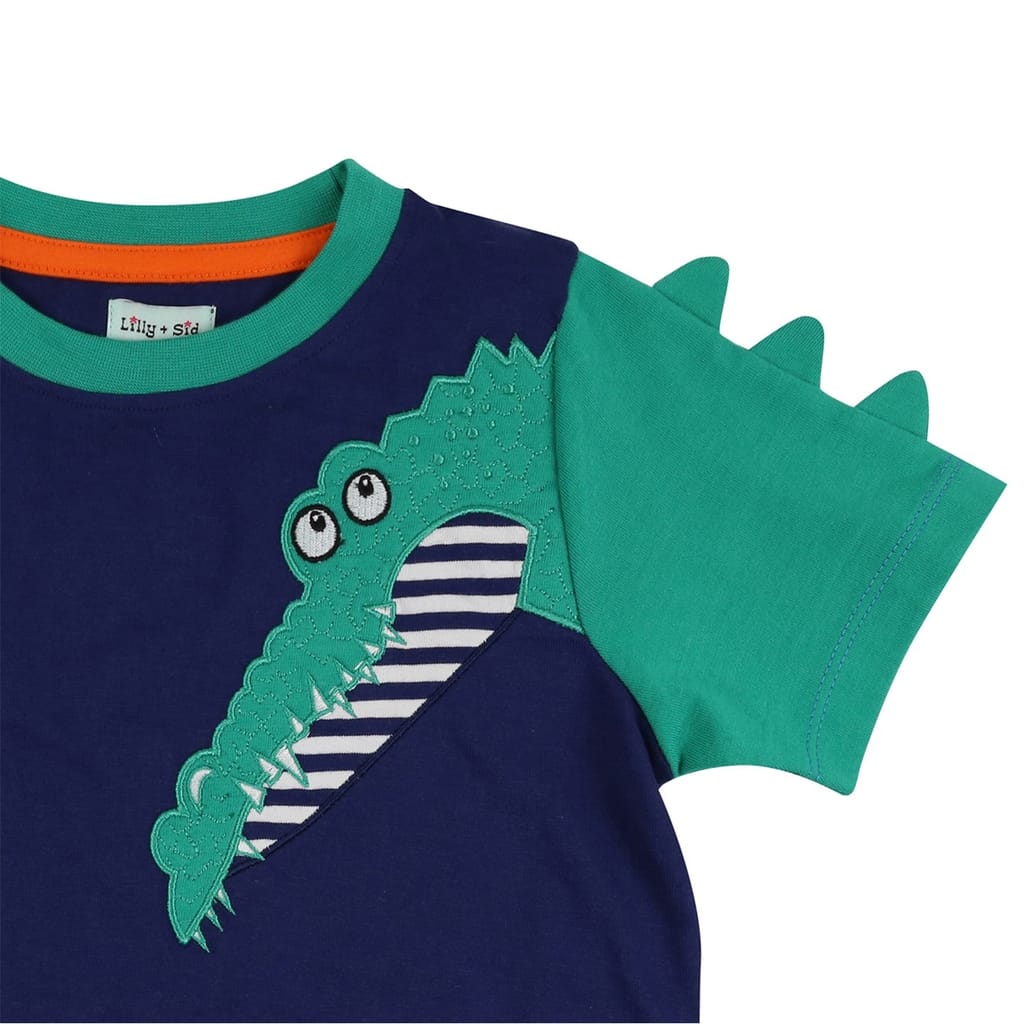 This Lilly & Sid top features a charming stripe pattern and a playful crocodile print. The regular fit and crew neck design ensure comfort, while the short sleeves make it perfect for warmer days. Embellished with an applique and embroidered crocodile logo, this top adds a touch of fun to any wardrobe. -