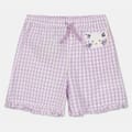 Lilly & Sid gingham shorts feature a woven design with a drawstring closure for a comfortable fit. These casual shorts are adorned with pockets and ruffles, adding a touch of charm to the overall look. -