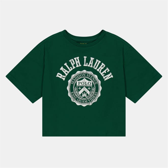 This Polo Ralph Lauren cropped top is part of the casual collection, featuring a regular fit and a crew neck. The short sleeves and graphic pattern add a stylish touch, making it a versatile addition to your wardrobe. -