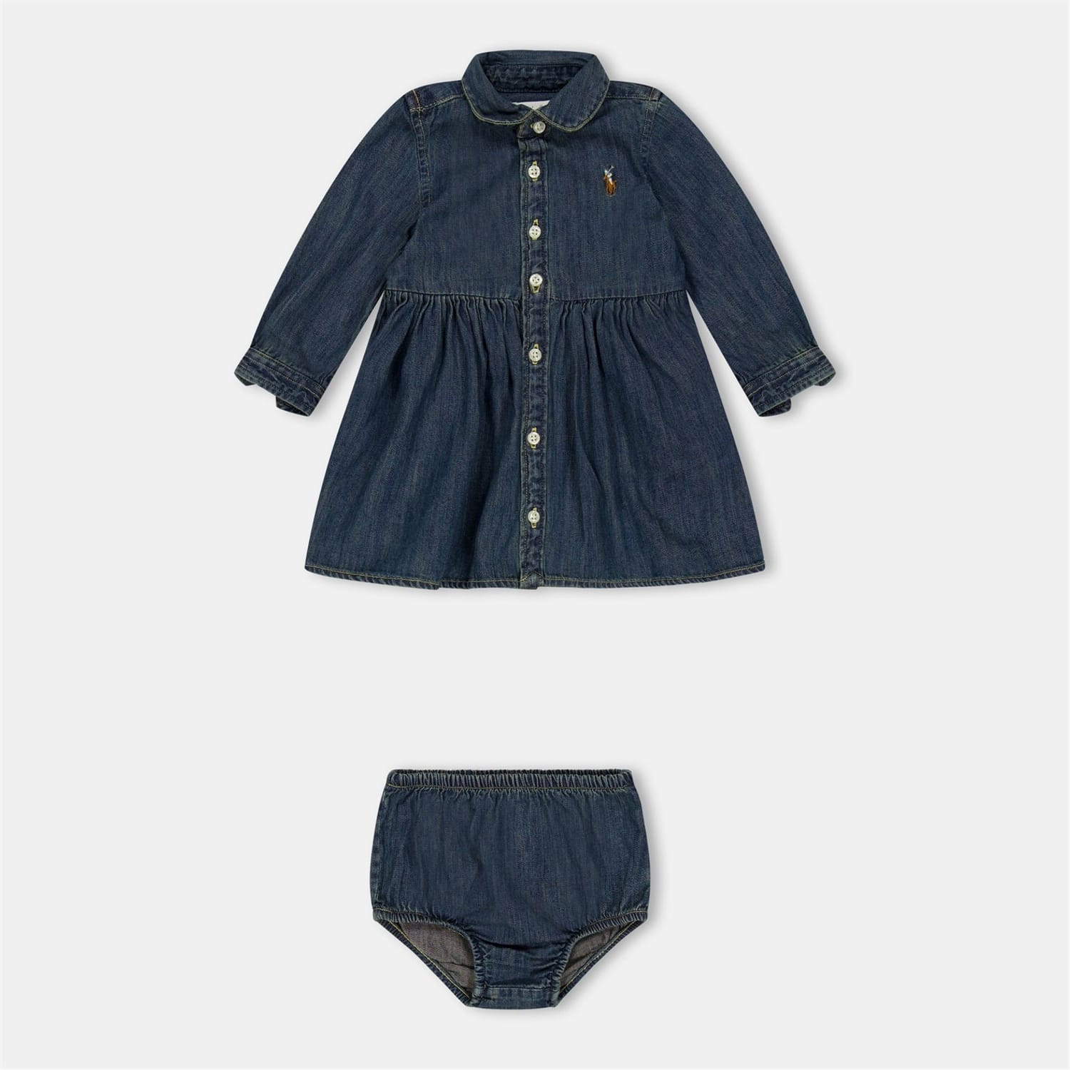 This Polo Ralph Lauren shirt dress features a classic shirt collar and a collared neck, offering a sophisticated look. The knee-length design with long sleeves and a straight hem provides a timeless silhouette. Crafted in a solid pattern, it includes a full button closure and a regular fit. Embellished with a chest logo and embroidered details, this dress combines elegance with subtle branding. -