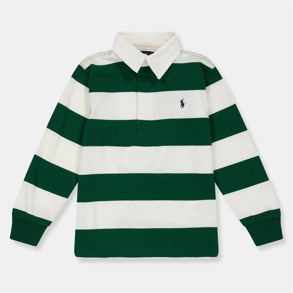 This Polo Ralph Lauren top from the casual collection features a wide stripe pattern and a regular fit. It is designed with long sleeves and a shirt collar, complemented by ribbed cuffs for added style. -