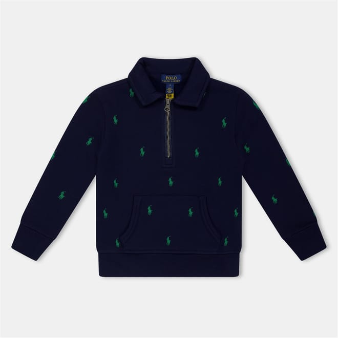 This Polo Ralph Lauren top features a zip neck and a polo collar, offering a classic yet modern look. The long sleeves are complemented by ribbed cuffs, ensuring a comfortable fit. The regular fit design is adorned with an all-over logo pattern, adding a distinctive touch. A front zipper closure completes the design, making it a versatile addition to any wardrobe. -