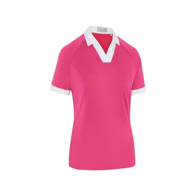 This Callaway top is a perfect blend of performance and style, ideal for semi-formal occasions. Featuring a polo collar and raglan short sleeves, it offers a regular fit for comfort. The solid pattern and subtle logo embellishment add a touch of sophistication. Designed for summer, this top is a versatile addition to your wardrobe. -