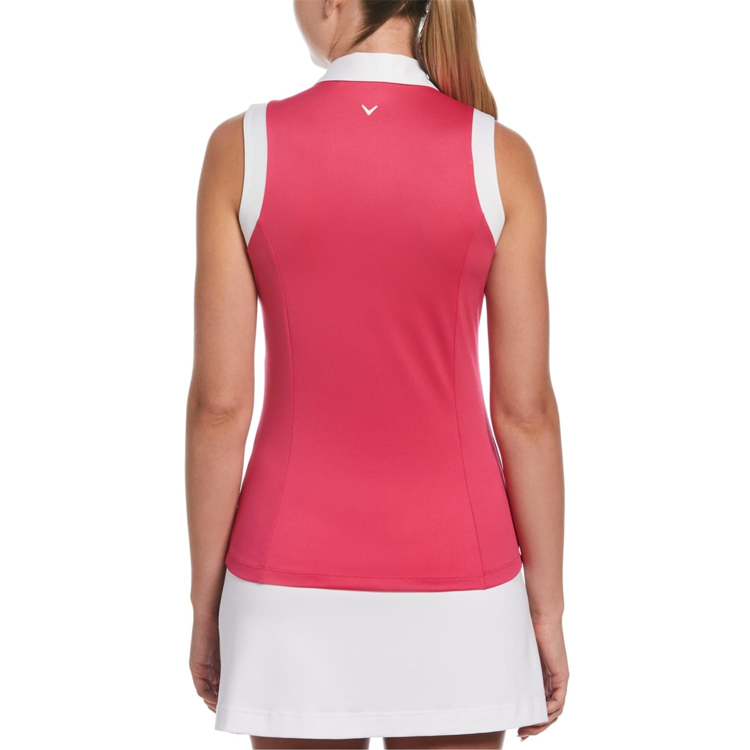 This Callaway top is a perfect blend of performance and style, ideal for semi-formal occasions. Designed with a polo collar and sleeveless cut, it offers a regular fit for comfort. The solid pattern and subtle logo embellishment add a touch of sophistication, making it a great choice for summer. -