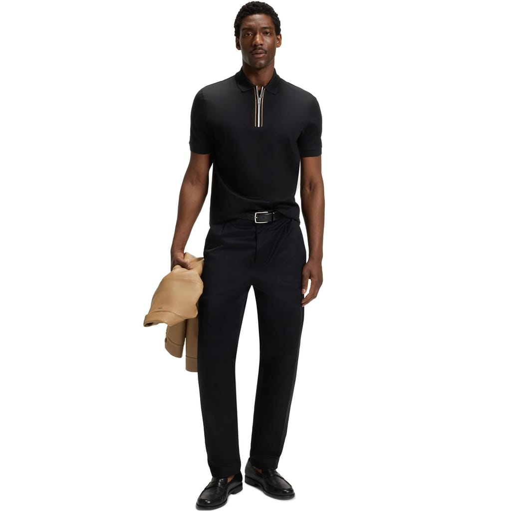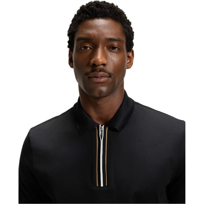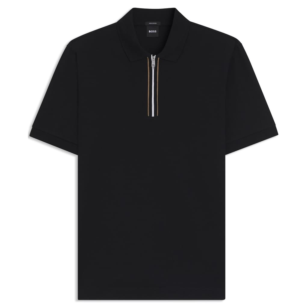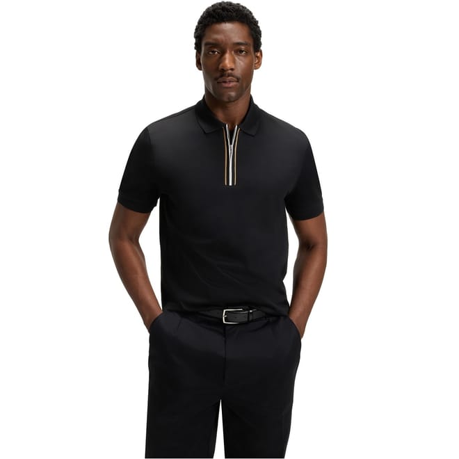 Upgrade your wardrobe with the BOSS Short Sleeve Polo Shirt, featuring a sleek zippered quarter-zip for a modern twist on a classic silhouette. Crafted with breathable fabric and accented by distinctive web detailing, it combines sporty elegance with everyday comfort. Subtle BOSS branding adds a refined edge. Ideal for casual Fridays or weekend social events, it’s a versatile must-have.
