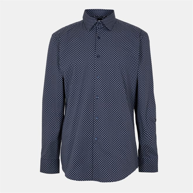 This Boss top features a classic shirt collar and a button closure, offering a regular fit. The long sleeves and polka dot pattern add a touch of style to this patterned piece, making it a versatile addition to your wardrobe. -