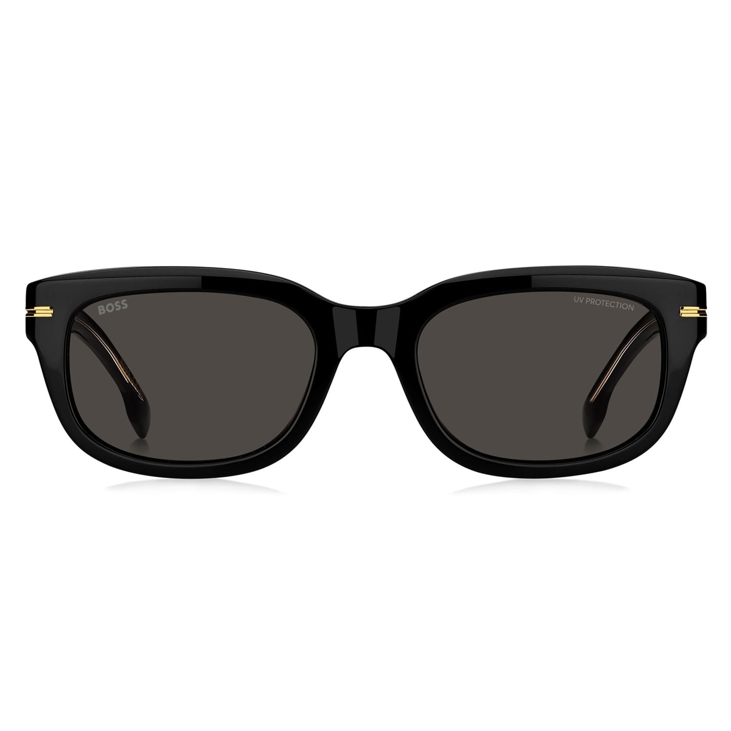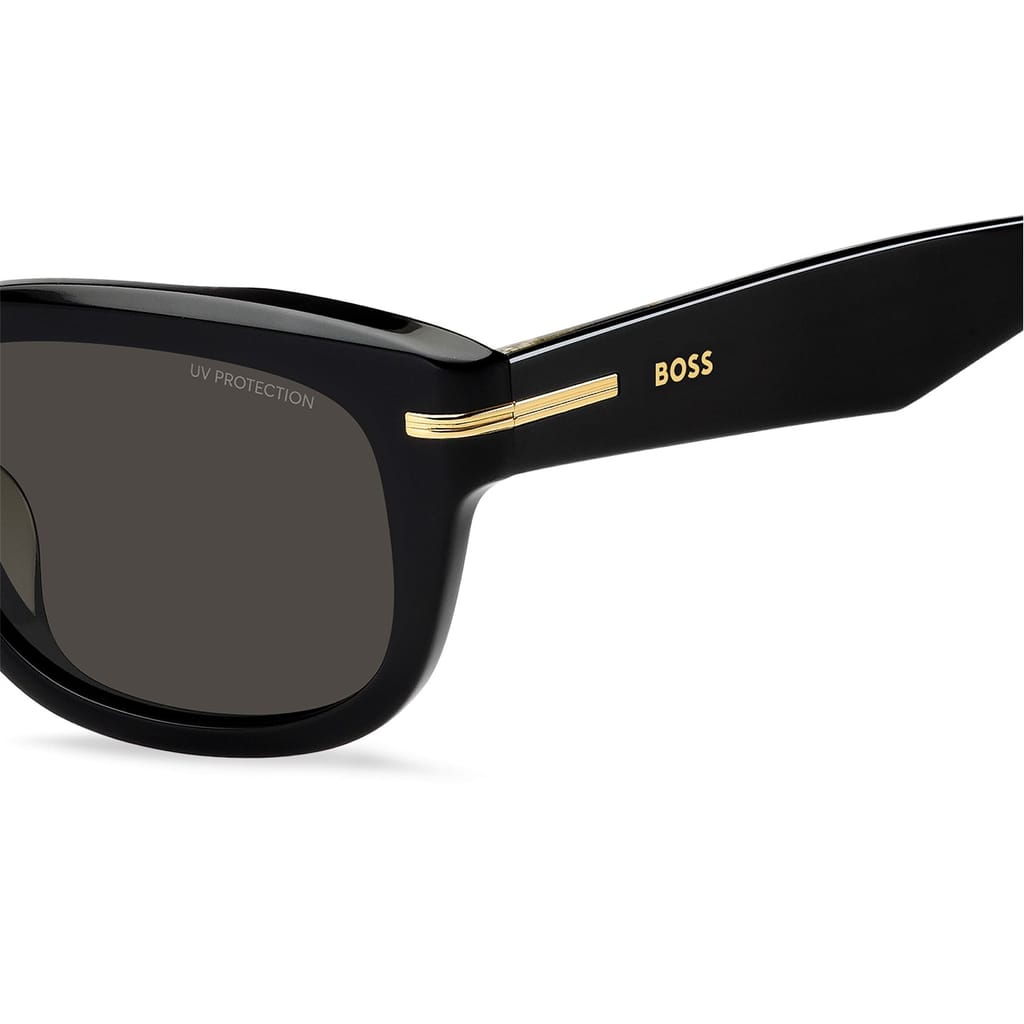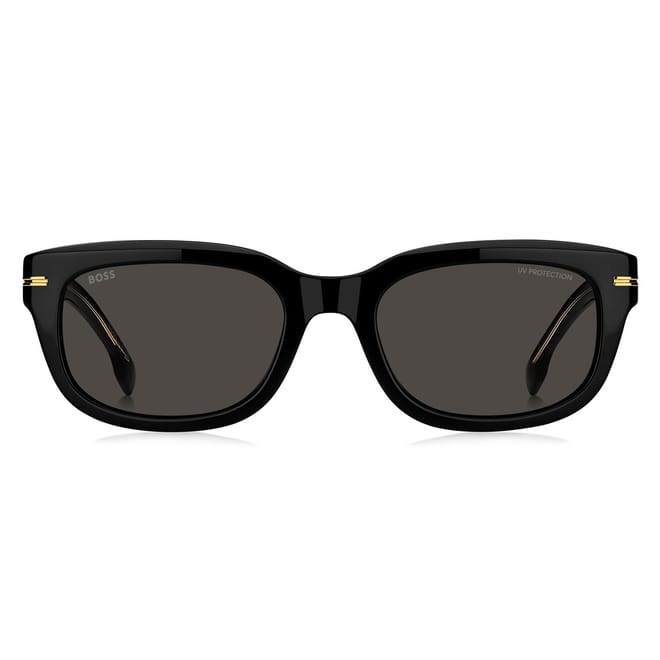 Elevate your style with Boss sunglasses, a perfect addition to any eyewear collection. Featuring a sleek rectangle frame crafted from durable plastic, these full-rim sunglasses offer a modern look. The single bridge design ensures comfort, while the lenses provide 100% UV protection and UV 400 technology, safeguarding your eyes in all seasons. A subtle logo embellishment adds a touch of sophistication, making them ideal for casual wear. -
