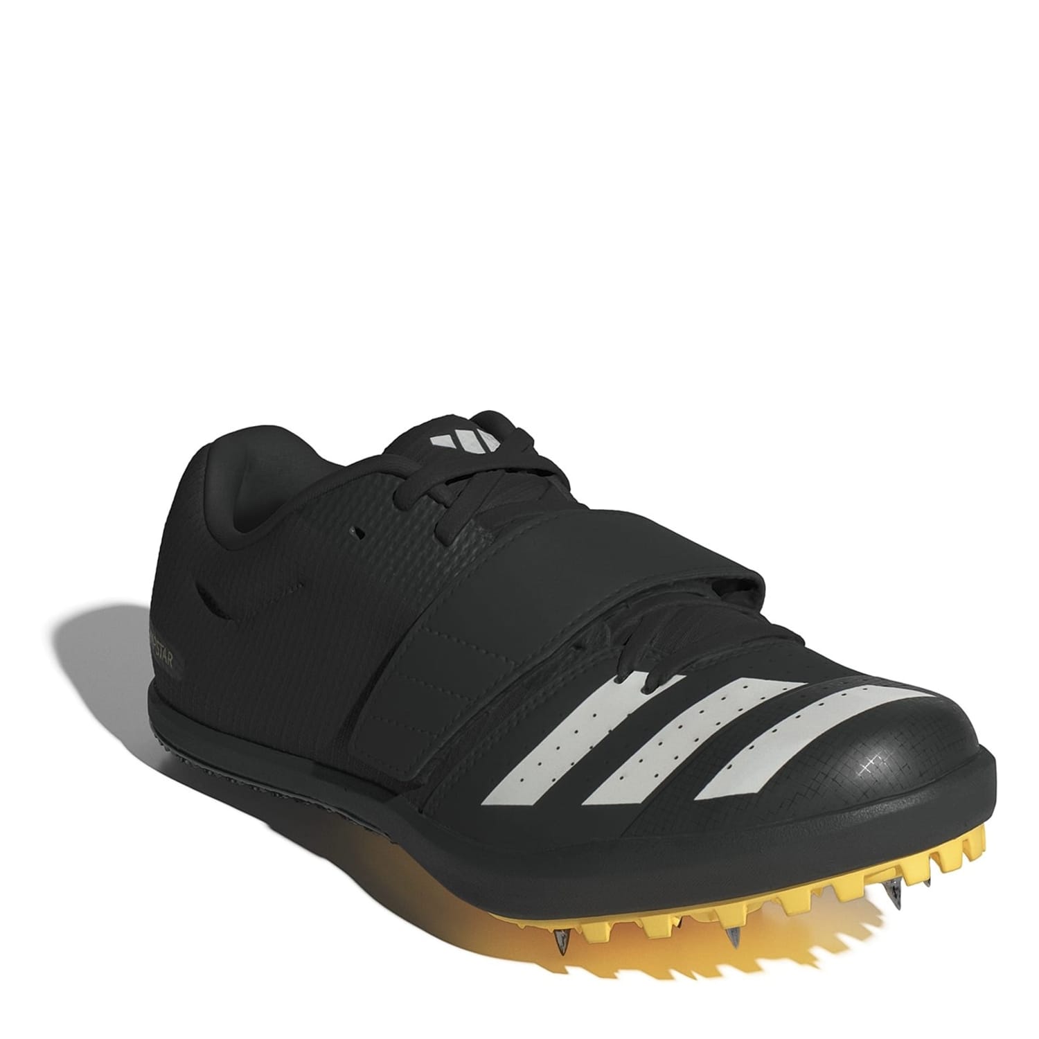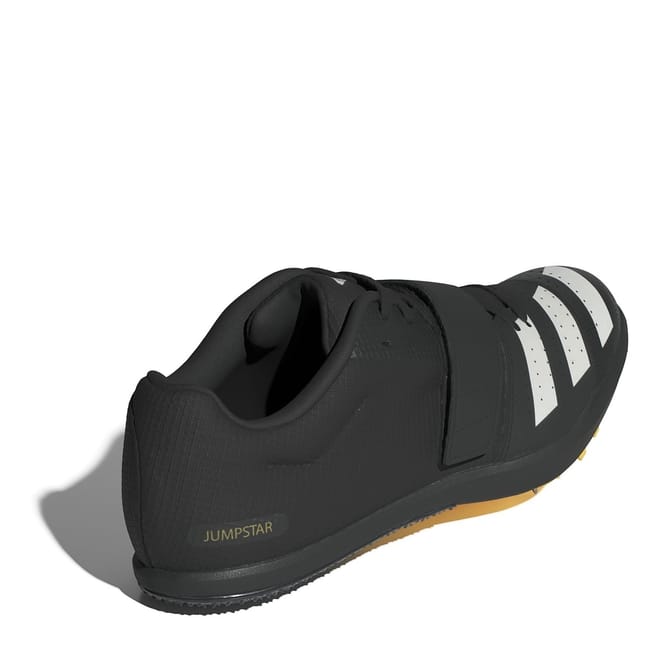 Experience the pinnacle of performance with the Adizero Jumpstar training shoes. Designed for men, these track and field shoes offer a regular fit and are made from textile and synthetics for durability. The rubber outsole ensures superior traction, while the belt/strap closure provides a secure fit. Feel the difference of high-quality athletic gear with adidas' Adizero line. Faster, higher and farther. These adidas track and field spikes help you jump to new heights. They're designed for the pole vault, triple jump and long jump. The upper has an internal fit system that provides extra lockdown at the midfoot. The stiff spike plate offers grip on the approach