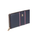 Discover the Tommy Hilfiger zip-around wallet, a stylish accessory featuring a distinctive stripe pattern. This wallet is designed with a secure zipper closure and showcases the iconic logo embellishment, ensuring both functionality and brand recognition. Perfect for those seeking a blend of practicality and fashion. -