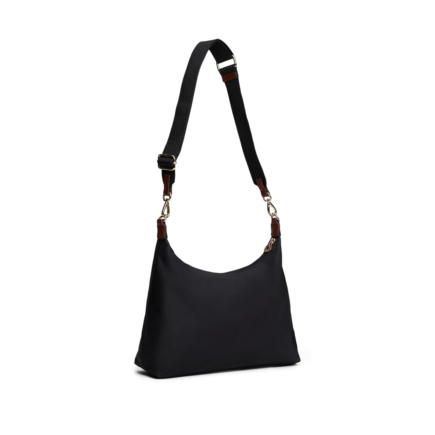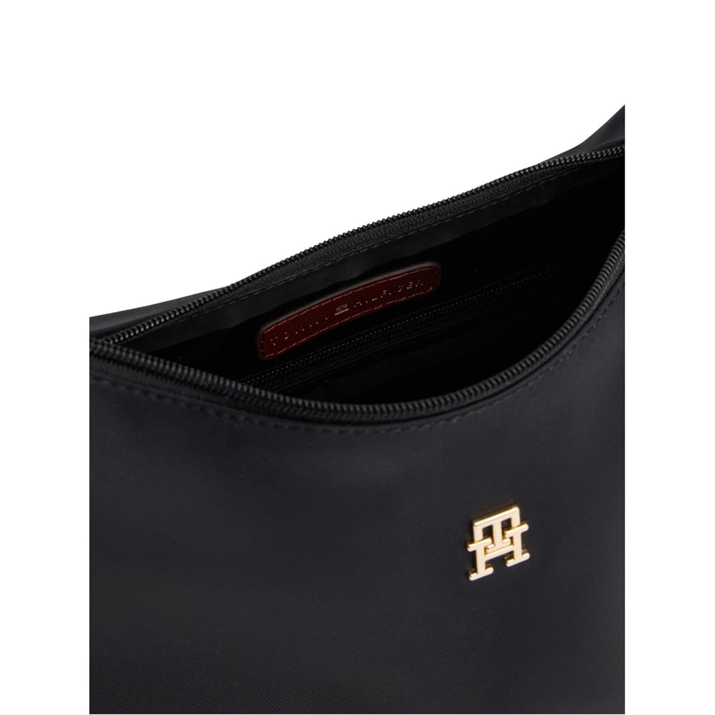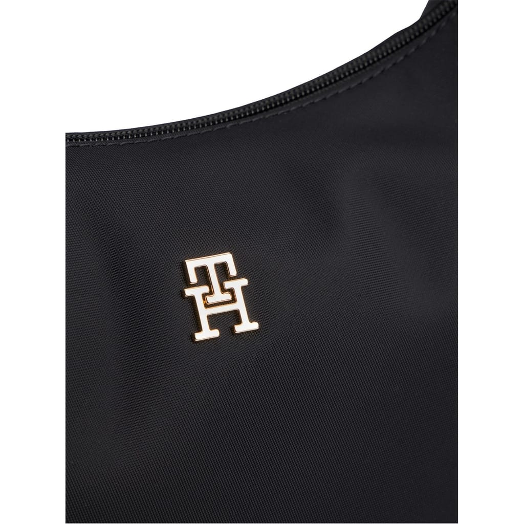 Discover the Tommy Hilfiger hobo bag, a stylish addition to your collection. This bag features a secure zipper closure and a comfortable shoulder handle for easy carrying. The elegant design is enhanced with a distinctive metal logo, adding a touch of sophistication to your ensemble. -