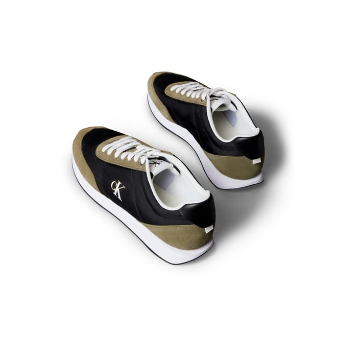 Calvin Klein's CK Retro Runners pair vintage-inspired design with contemporary comfort. These throwback sneakers feature layered panels and branding set on a sculpted, cushioned sole, delivering old school athletic style for casual shoe enthusiasts.