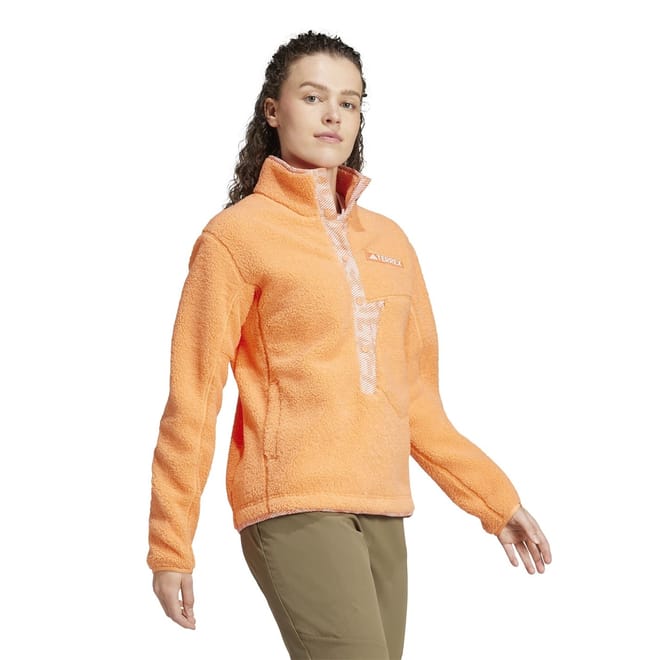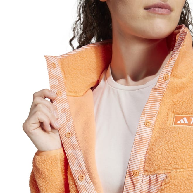 Keep your wanderlust alive when it's cold outside. Whether you're heading out for a cool-weather hike or kicking back at camp under the stars, this adidas Terrex pullover offers easy-wearing warmth and everyday versatility. Backpack-friendly seams let you carry your gear comfortably, while a snap-button front allows you to adjust the ventilation. Tuck your phone in the low chest pocket for a minimalist feel when you're on the go.