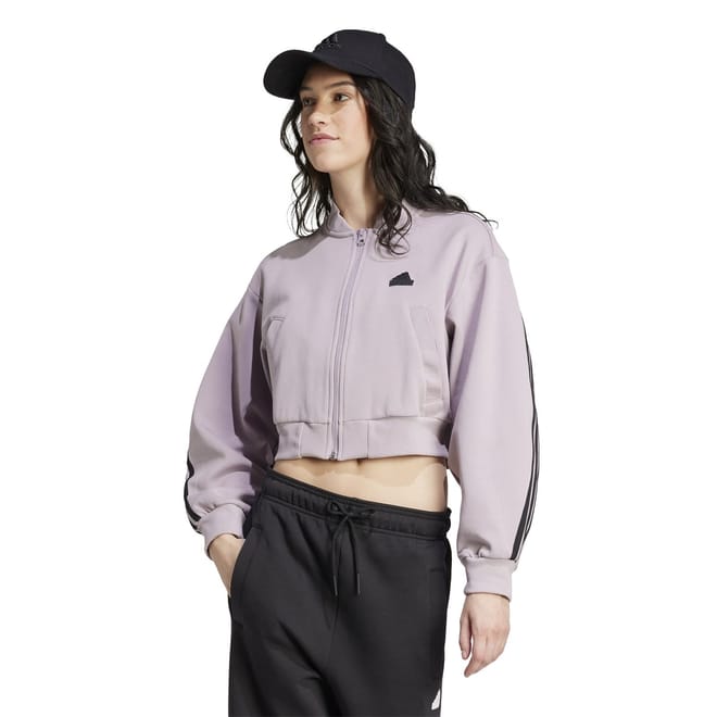 Elevate your style to new heights with adidas' Future Icons 3-Stripes Bomber Jacket for Women - a fusion of retro-futuristic flair and everyday practicality. Effortlessly slip it on after a workout or before yoga sessions for a quick, stylish layer, finished with the iconic 3-stripe design across the back and sleeves and signature 3-stripe logo.
