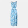 This Biba maxi dress features a scoop neckline and a straight hem, offering a graceful silhouette. The floral pattern adds a touch of elegance, while the tie shoulder design complements the sleeveless style. A tie waist closure ensures a flattering fit, making it a versatile addition to any wardrobe. -