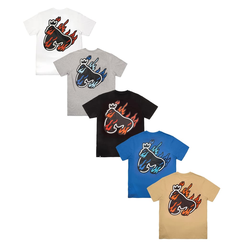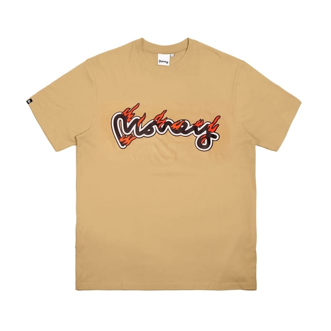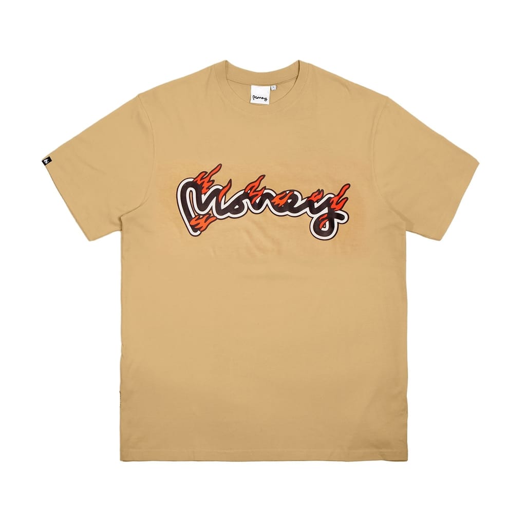 Upgrade your essentials with the Money 5-Pack Flame Sig Tee, a versatile set of tees each featuring a bold Money Sig flame print on the front and a flaming Ape logo on the back. The pack includes tees in Royal Blue, Black, White, Tan, and Grey Melange, with striking gold foil print accents on the White and Black options. Designed with a regular fit and ribbed crew neck, these tees bring both comfort and style. Each shirt is crafted from 100% cotton single jersey and is machine washable—just follow the care label for best results