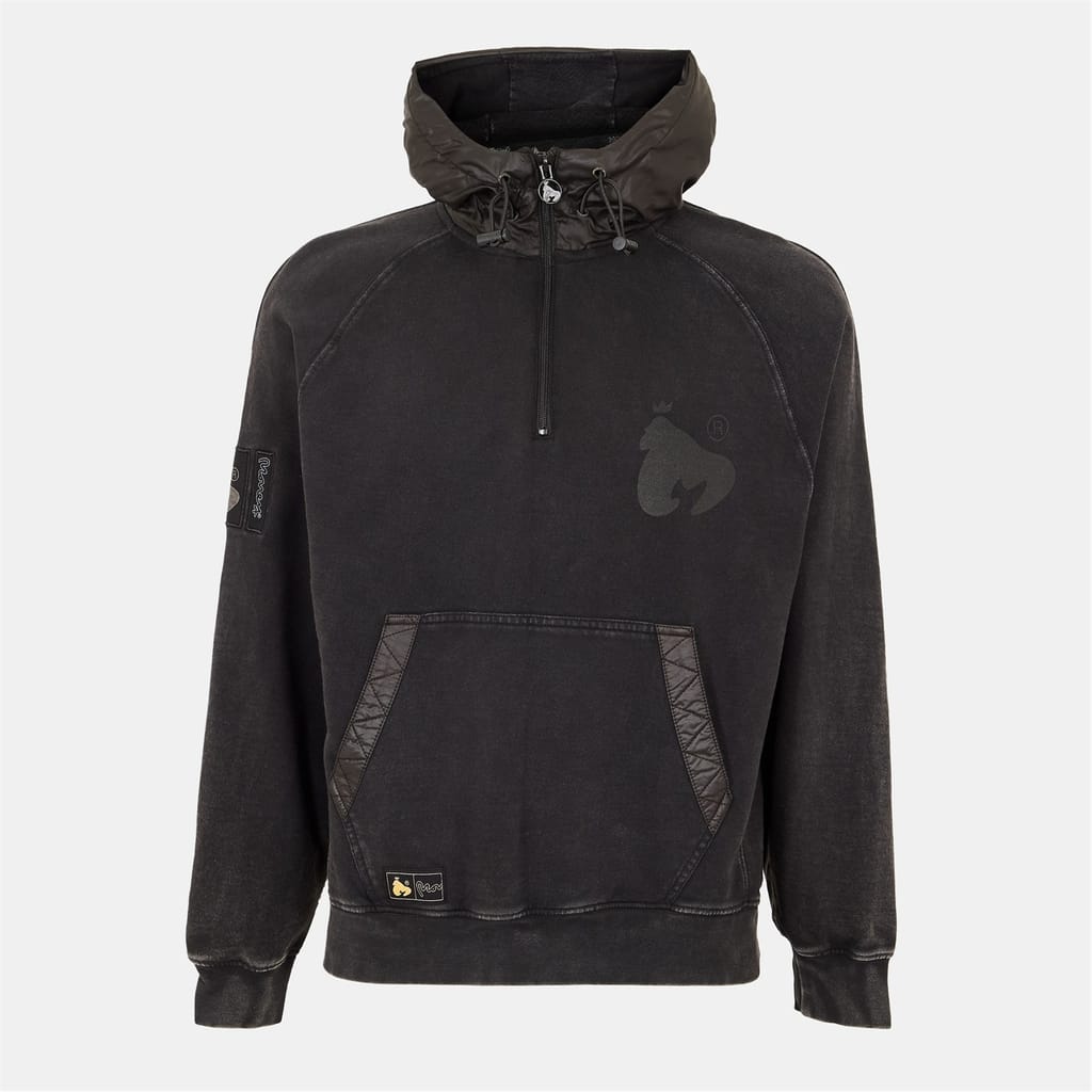 This Money top features a hooded neck and a drawstring closure, offering a regular fit with long raglan sleeves. The design includes a kangaroo pocket, a logo patch, and ribbed cuffs, making it suitable for all seasons. The inner cord collar adds a unique touch, while the washed pattern enhances its casual appeal. -