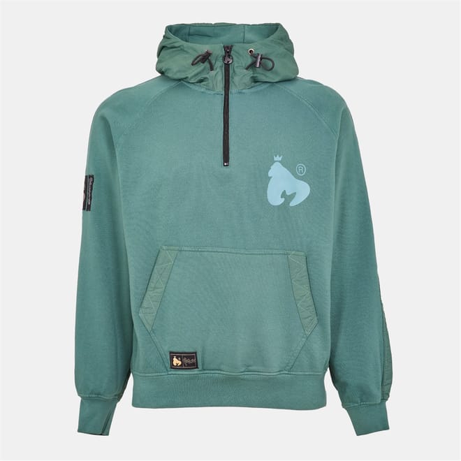 This Money top features a hooded neck and a quarter zipper closure, offering a stylish and functional design. The long raglan sleeves and ribbed cuffs ensure a comfortable fit, while the kangaroo pocket adds practicality. The solid pattern is complemented by a front logo, making it a versatile addition to your wardrobe. -