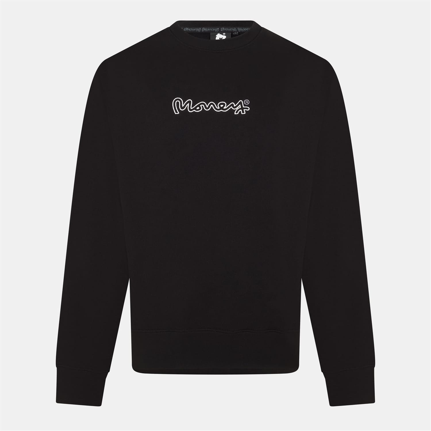 This Money top features a crew neck and long sleeves, offering a regular fit. The solid pattern is complemented by ribbed cuffs, while the logo embellishment adds a touch of branding. The top is adorned with lettering graphics, making it a stylish choice for casual wear. -
