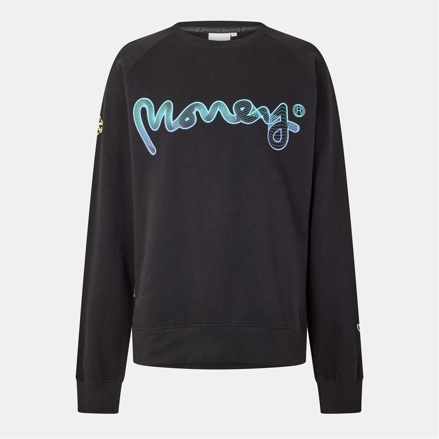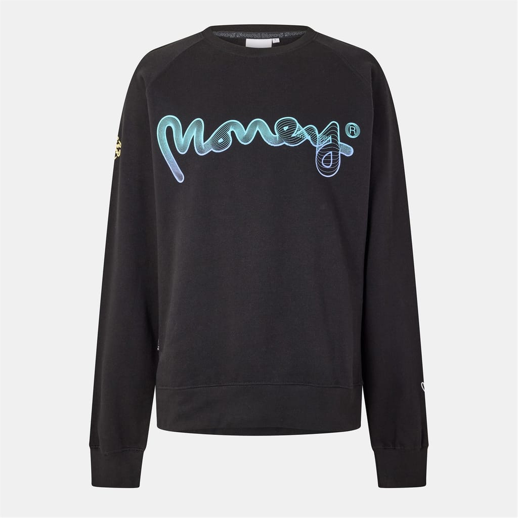 Discover the Money flow top, featuring a crew neck and long raglan sleeves for a comfortable fit. This regular fit top is adorned with a striking graphic print and lettering, complemented by a ribbed collar and cuffs. The logo embellishment adds a distinctive touch, making it a standout piece in any wardrobe. -