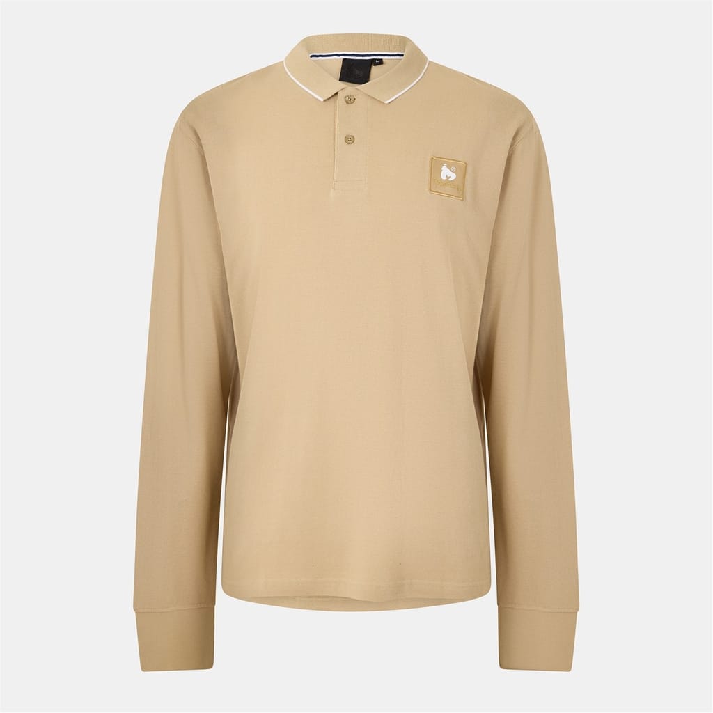 This Money top features a solid pattern with a polo collar and long sleeves. The regular fit ensures comfort, while the ribbed cuffs add a touch of style. Embellished with a logo patch, this casual piece is perfect for everyday wear. The button closure adds a classic touch to this versatile top. -