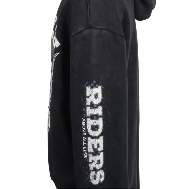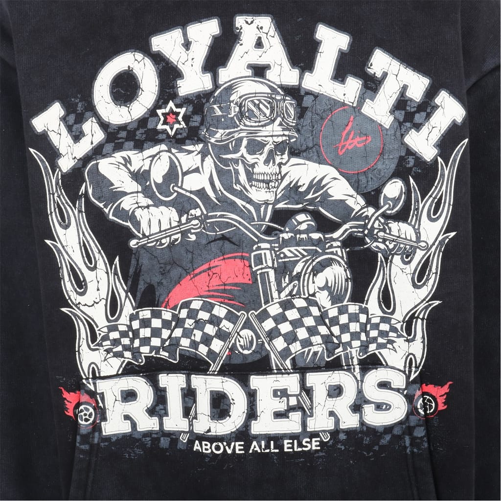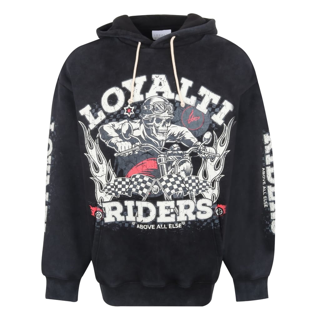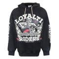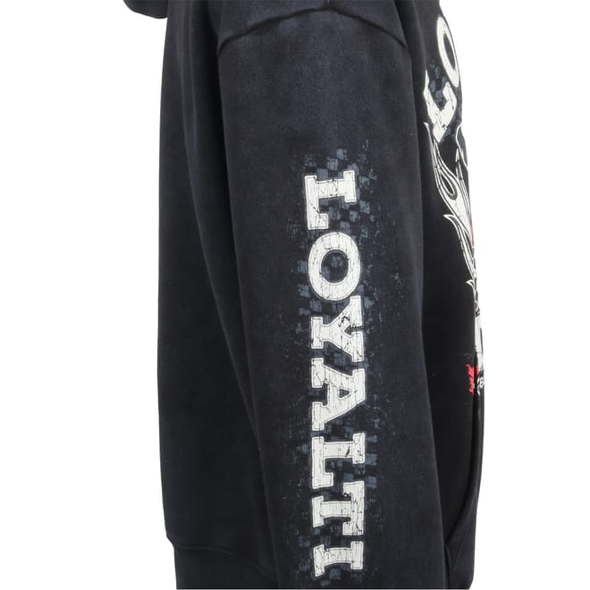 This Loyalti top features a hooded design with a drawstring closure, offering a regular fit. The long sleeves are complemented by ribbed cuffs, adding a touch of style. Adorned with a graphic print and logo embellishments, this top is perfect for those who appreciate a blend of comfort and fashion. -