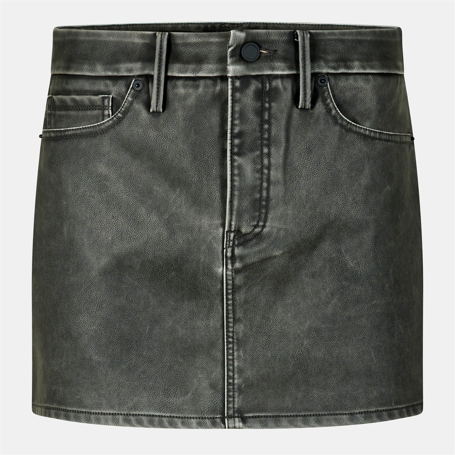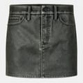 This Good American mini skirt is a stylish addition to your casual collection. Featuring a stone wash pattern, it offers a regular fit with a front button and zip fly closure. The 5-pocket design includes front and coin pockets, enhanced by detailed stitching. Belt loops add functionality, making it a versatile piece for various occasions. -