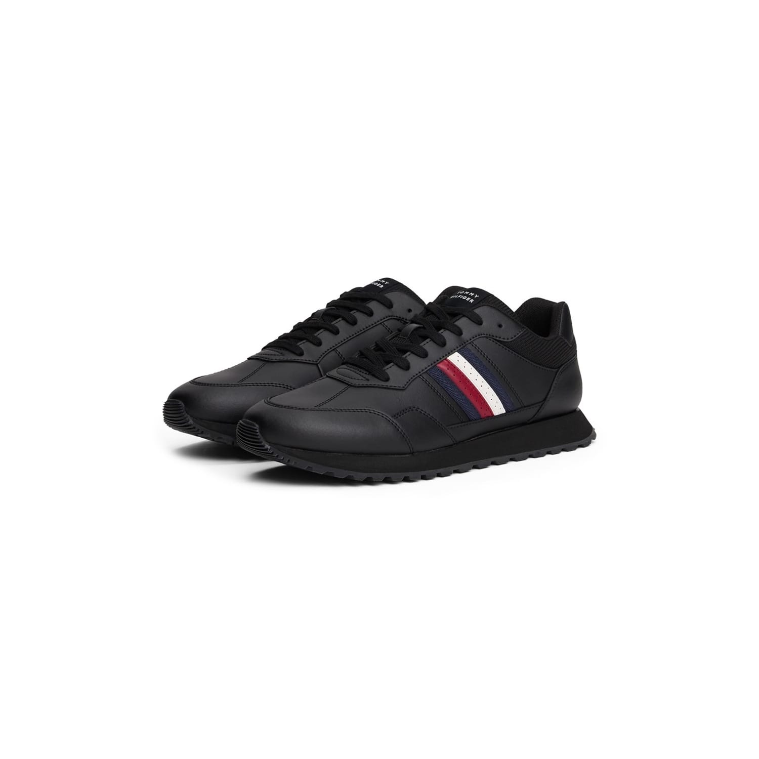 Discover the Tommy Hilfiger low-top sneakers, designed for those who appreciate style and comfort. These runner-style shoes feature a classic round toe and a distinctive stripe pattern, making them a versatile addition to any wardrobe. Perfect for casual outings, these sneakers combine functionality with the iconic Tommy Hilfiger aesthetic. -