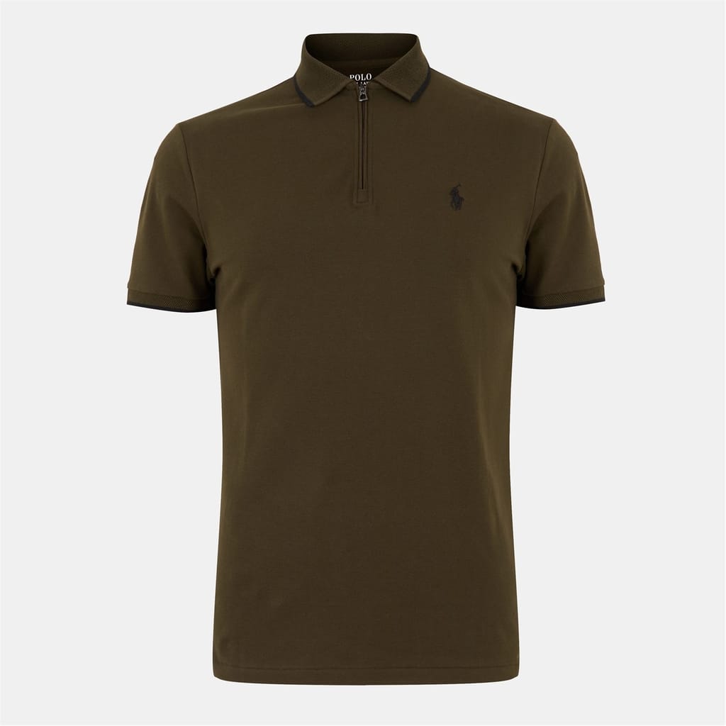 This Polo Ralph Lauren top features a classic polo collar and a convenient zipper closure. Designed with short sleeves and a regular fit, it offers a timeless solid pattern for a versatile look. -