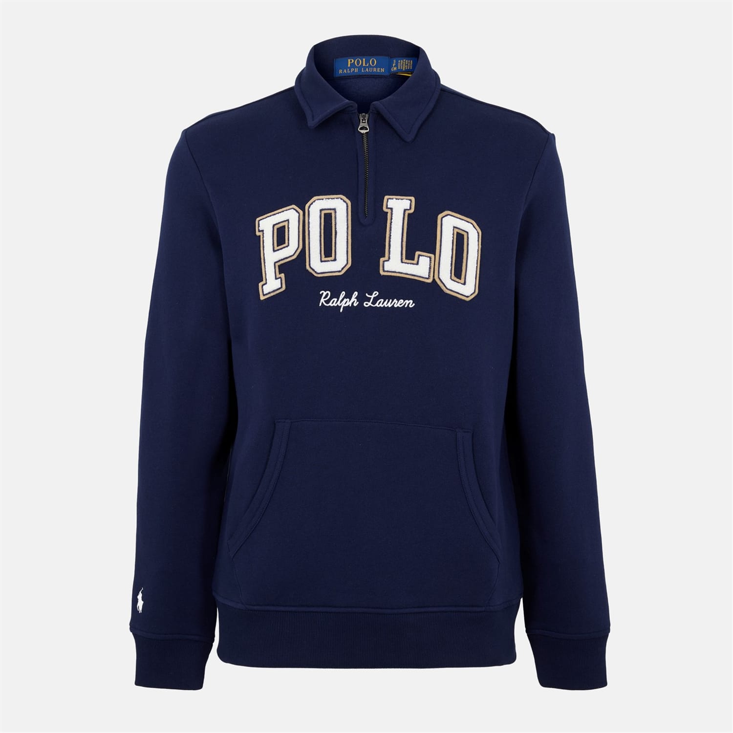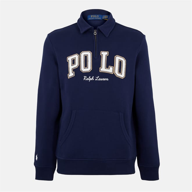 This Polo Ralph Lauren sweatshirt jacket features a zip neck and a polo collar, offering a classic look. The regular fit ensures comfort, while the ribbed cuffs and hem provide a snug finish. The solid pattern is complemented by an embroidered logo and lettering, adding a touch of brand identity. -