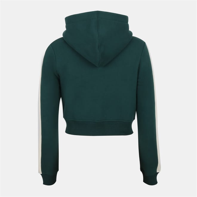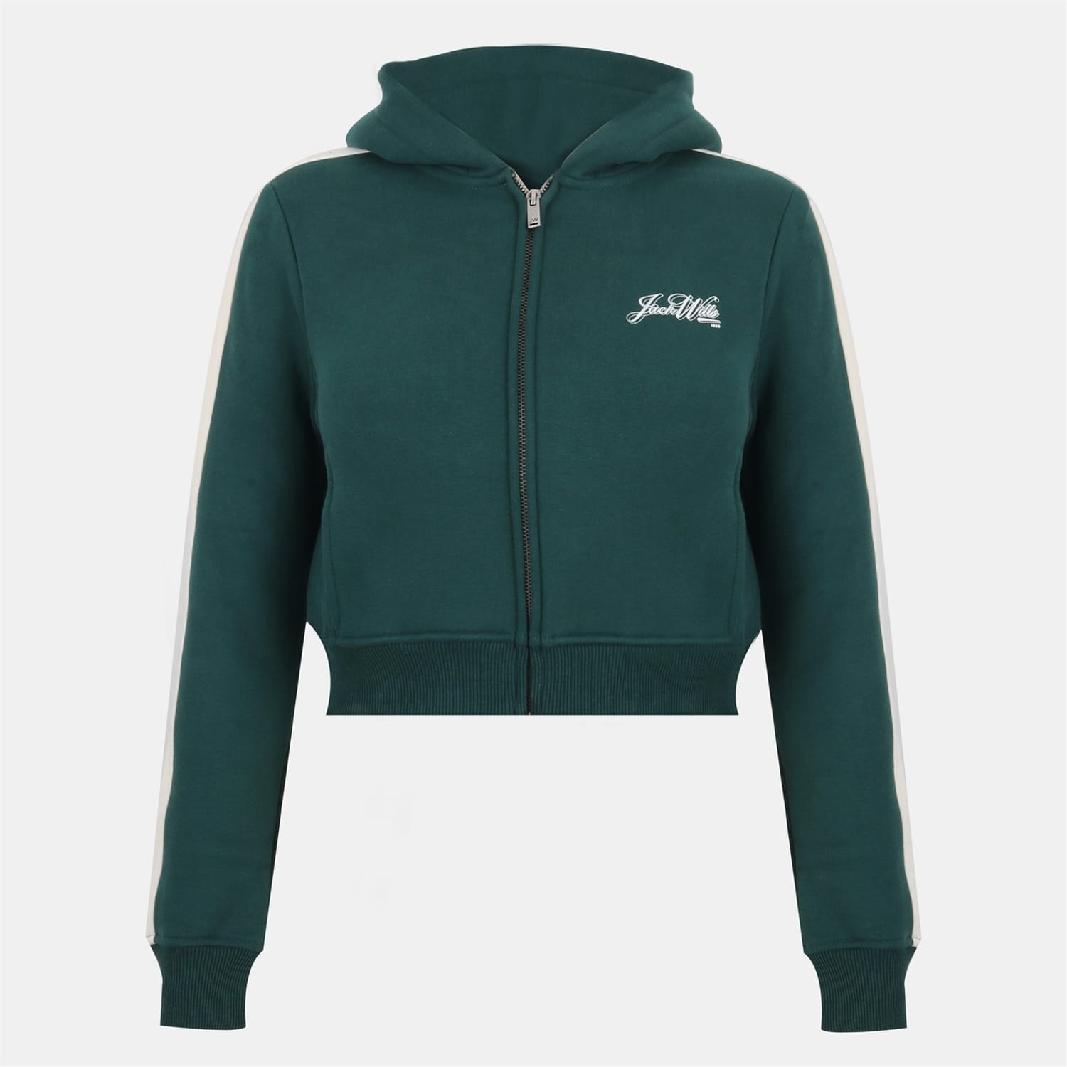 This Jack Wills cropped top from the outerwear collection features a slim fit and a solid pattern. It includes a zipper closure and long sleeves with ribbed cuffs. The design is completed with a logo embellishment, adding a touch of brand identity to the piece. -