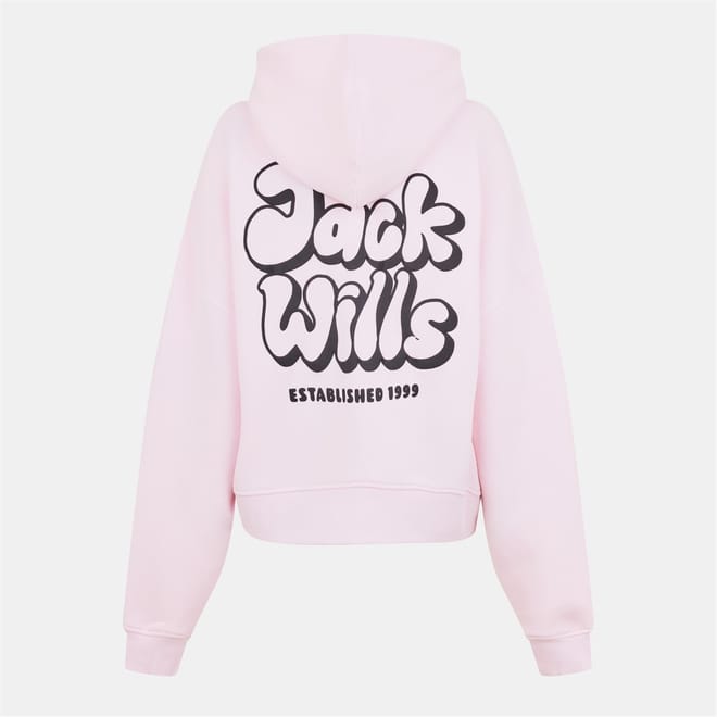 Discover the Jack Wills cropped top, featuring a hooded neck and long sleeves. This oversized fit piece is designed with a graphic pattern and finished with ribbed cuffs, offering a stylish and comfortable look. -