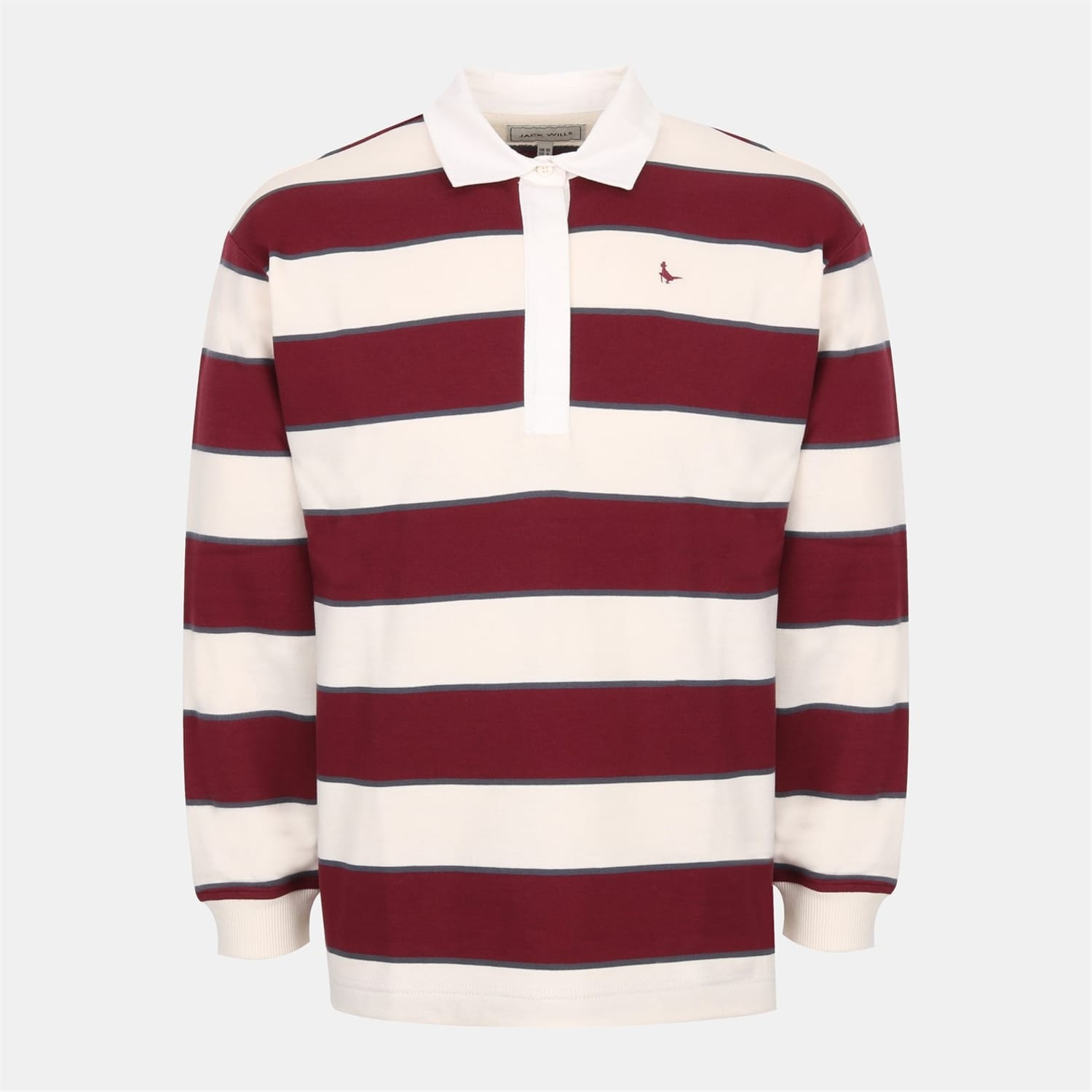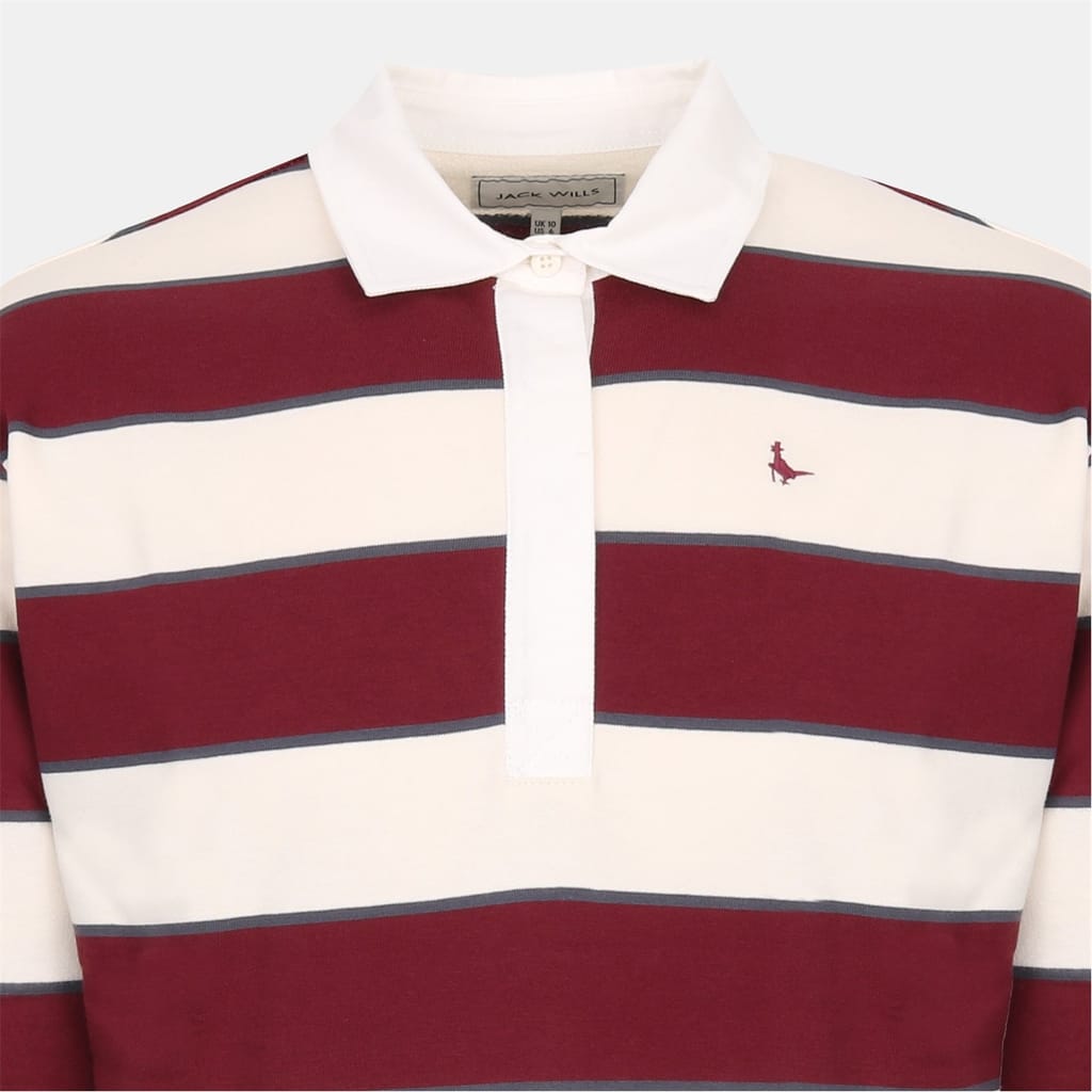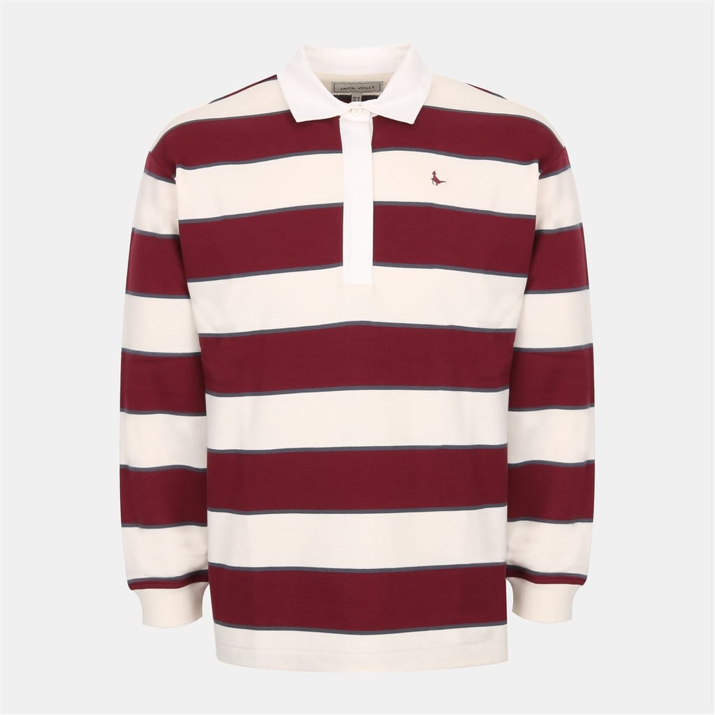 This Jack Wills top is a casual essential featuring a regular fit and long sleeves with ribbed cuffs. The polo collar and button placket add a classic touch, while the horizontal stripe pattern enhances its style. An embroidered logo subtly adorns the design, making it suitable for all seasons. -