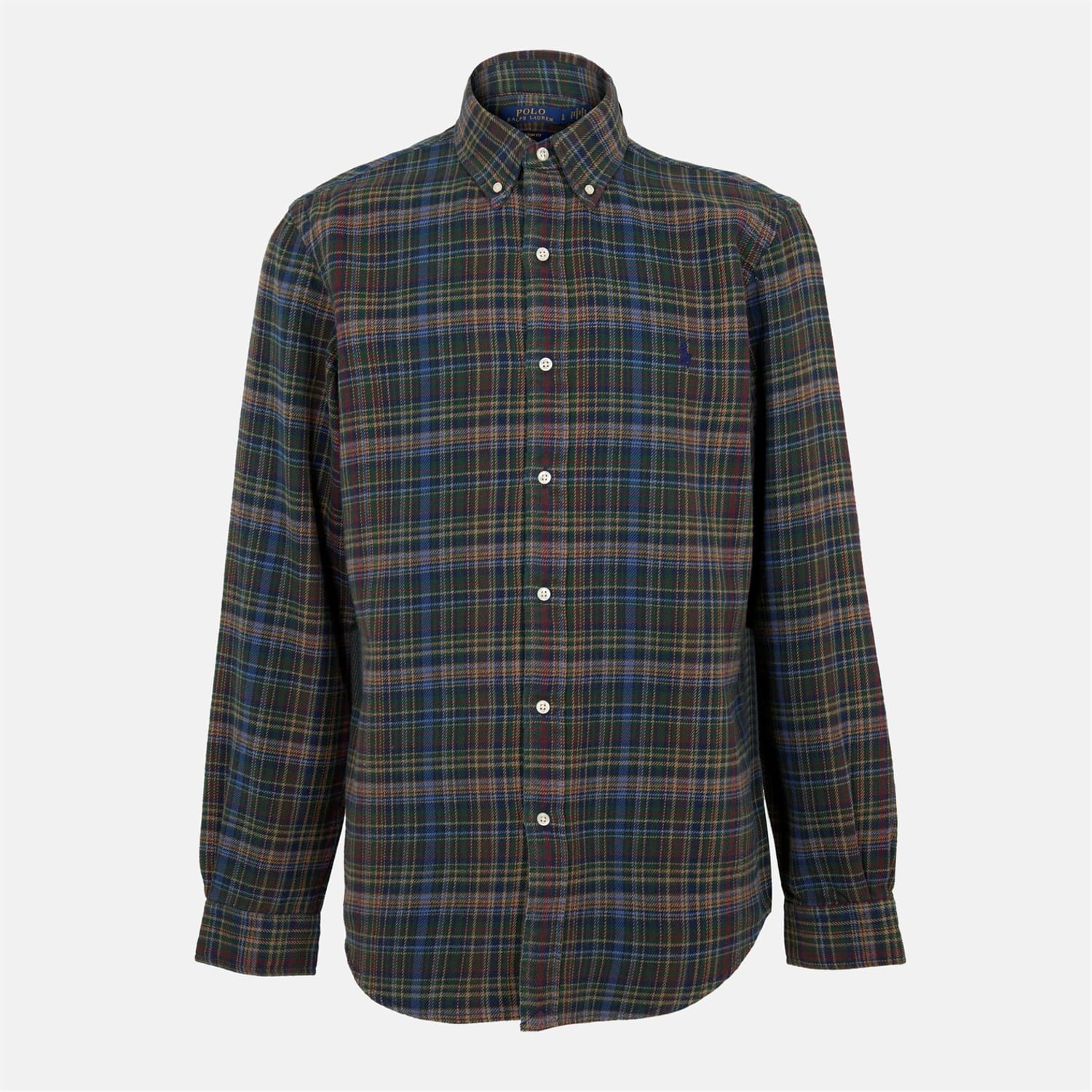 This Polo Ralph Lauren top features a classic plaid pattern, offering a timeless appeal. Designed with long sleeves and a button closure, it ensures a comfortable fit. The regular fit silhouette adds to its versatile charm, making it a staple piece for any wardrobe. -