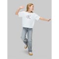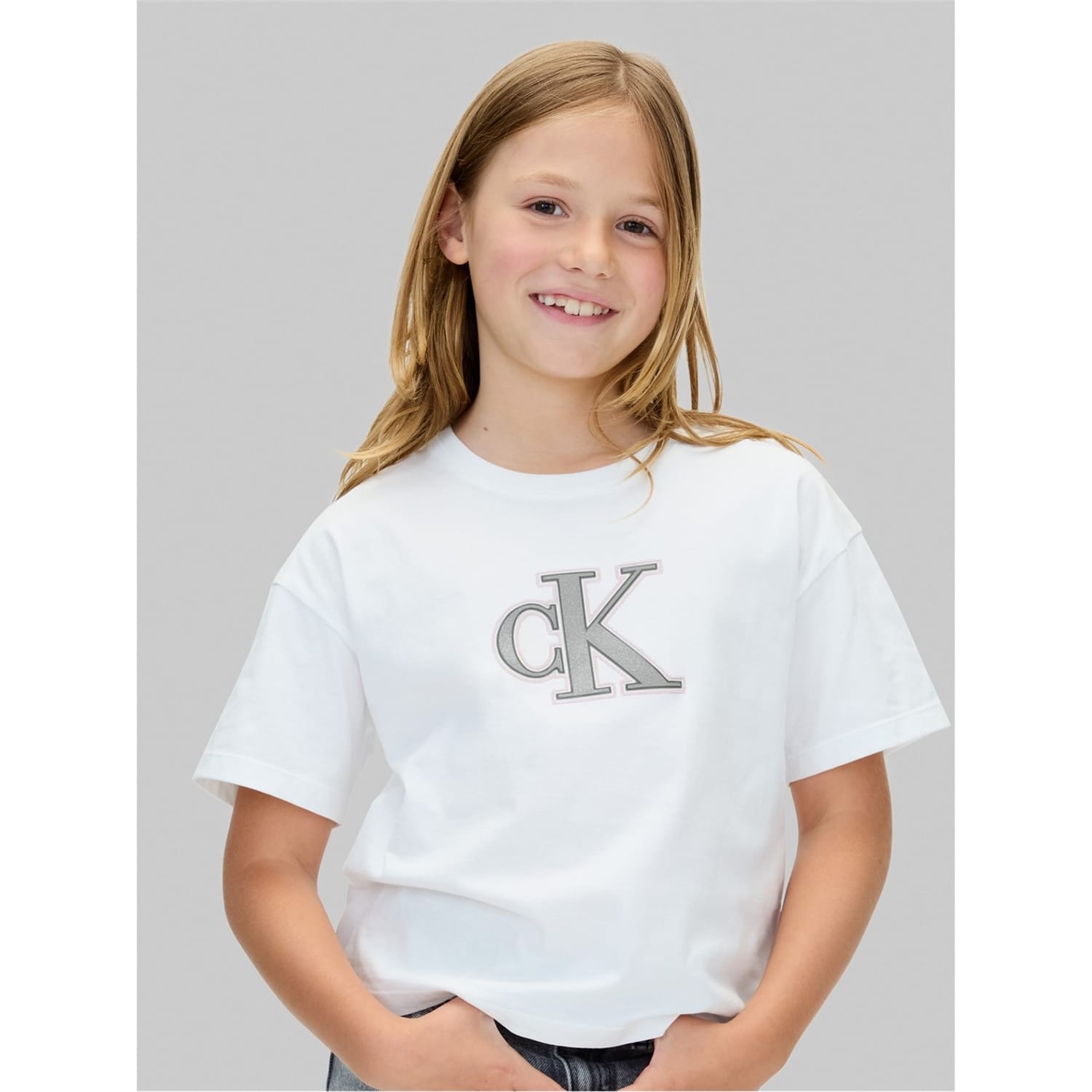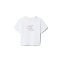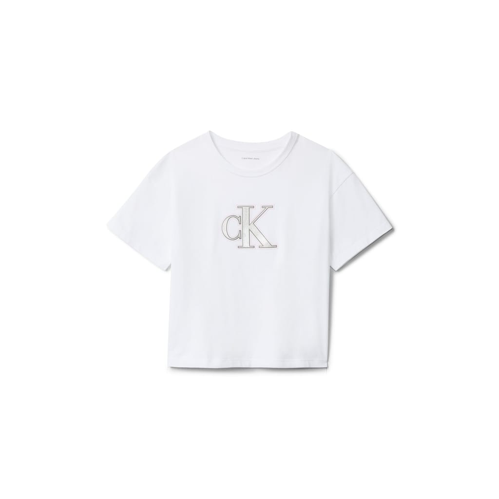This Calvin Klein Jeans top features a cropped design with a crew neck and short sleeves. The solid pattern is complemented by a subtle logo embellishment, offering a regular fit for everyday comfort. -