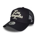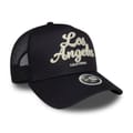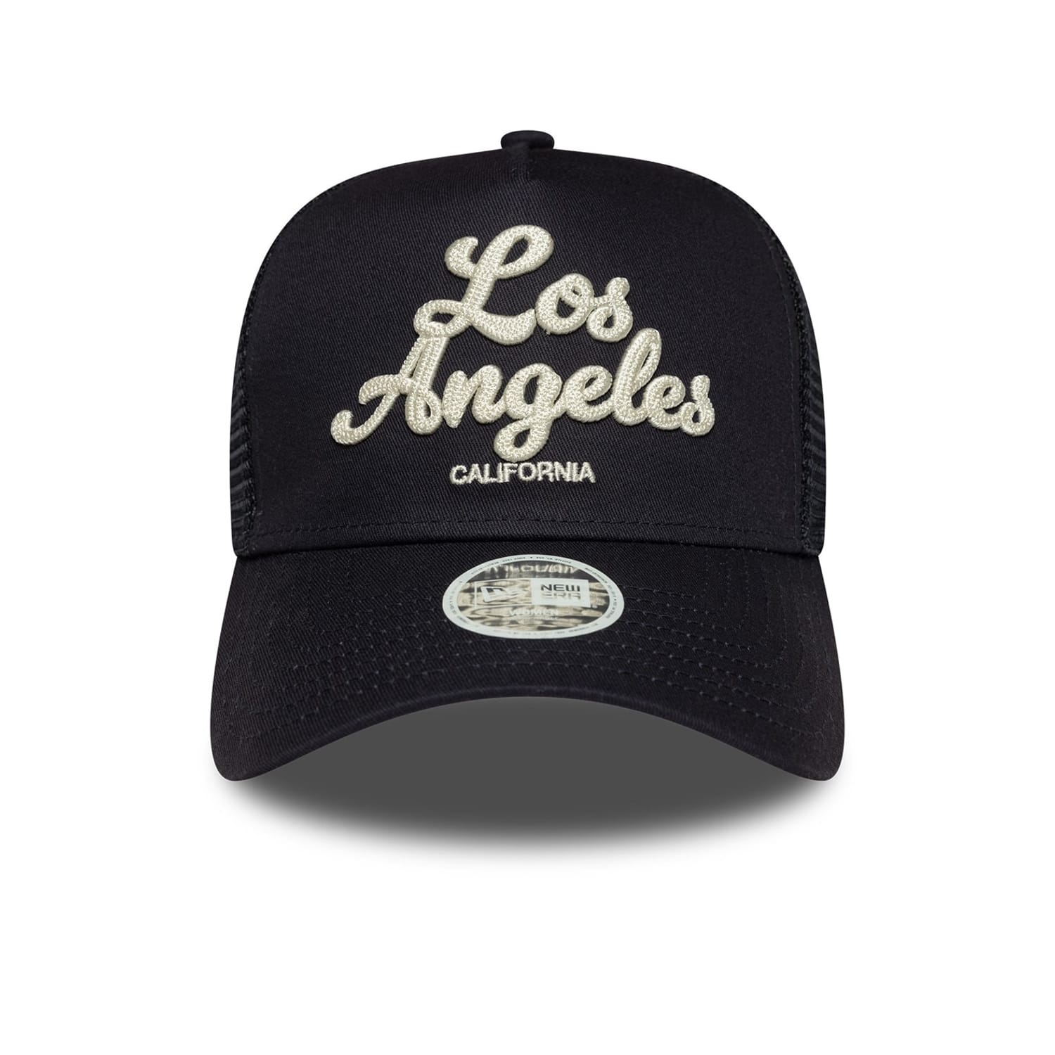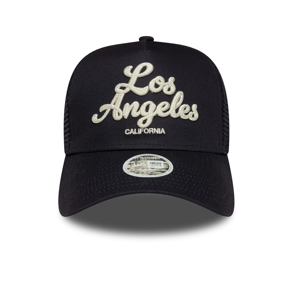 Discover the New Era trucker cap, featuring a classic snap-back closure for a comfortable fit. This cap is adorned with embroidered lettering, adding a stylish touch to your look. Perfect for those who appreciate a blend of functionality and design, this cap is a must-have accessory for any wardrobe. -